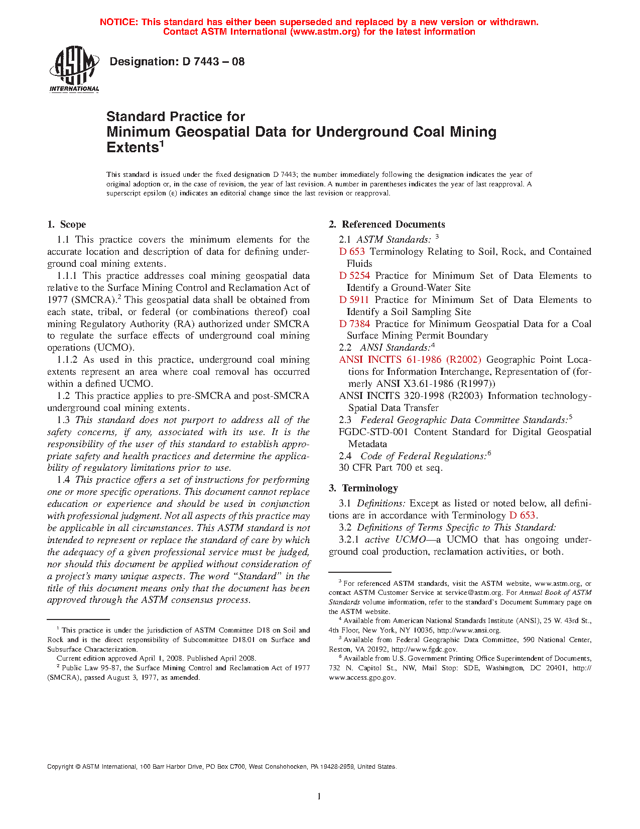 1.1.1 This practice addresses coal mining geospatial data relative to the Surface Mining Control and Reclamation Act of 1977 (SMCRA). This geospatial data shall be obtained from each state, tribal, or federal (or combinations thereof) coal mining Regulatory Authority (RA) authorized under SMCRA to regulate the surface effects of underground coal mining operations (UCMO).