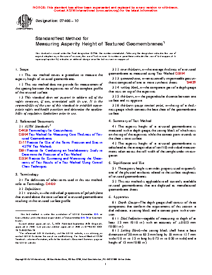 1.1 TThis test method covers a procedure to measure the asperity height of textured geomembranes.
