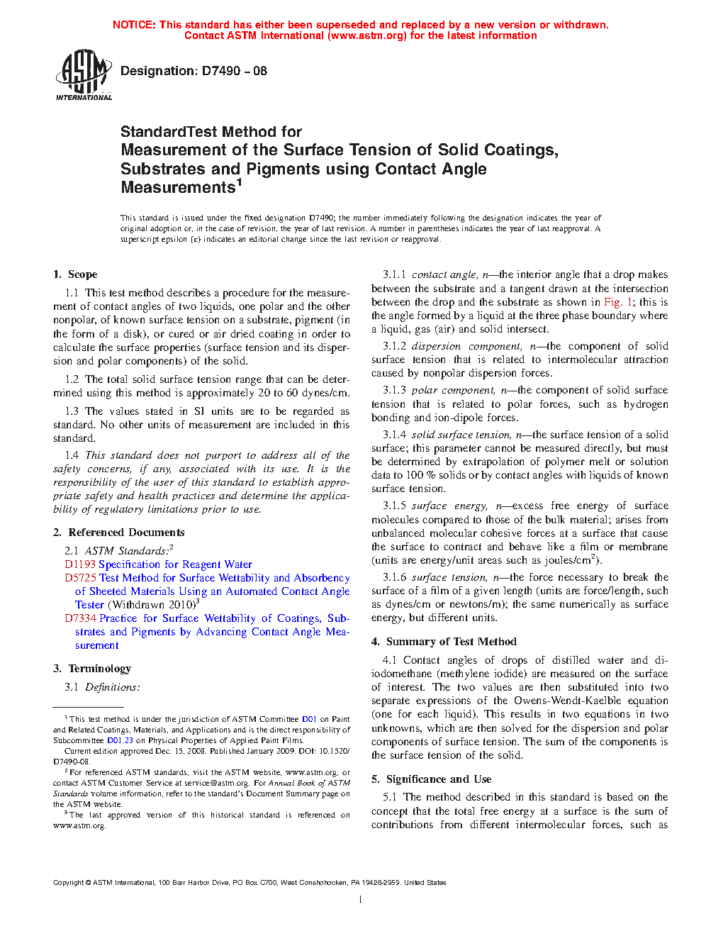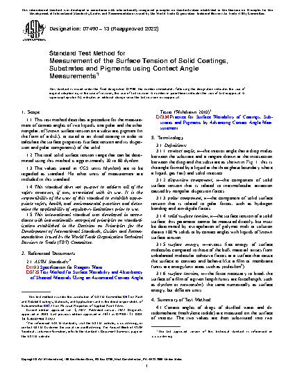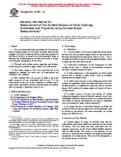 1.2 The total solid surface tension range that can be determined using this method is approximately 20 to 60 dyn/cm.