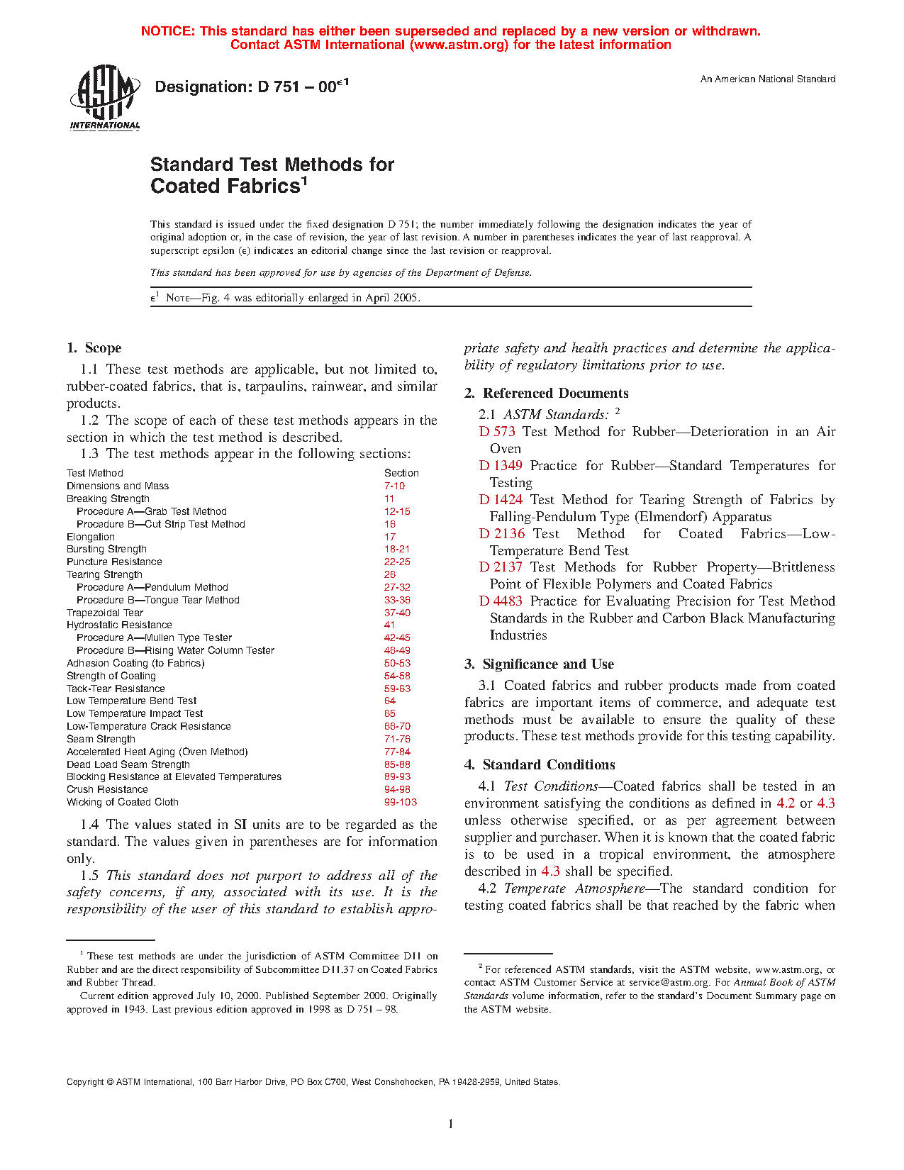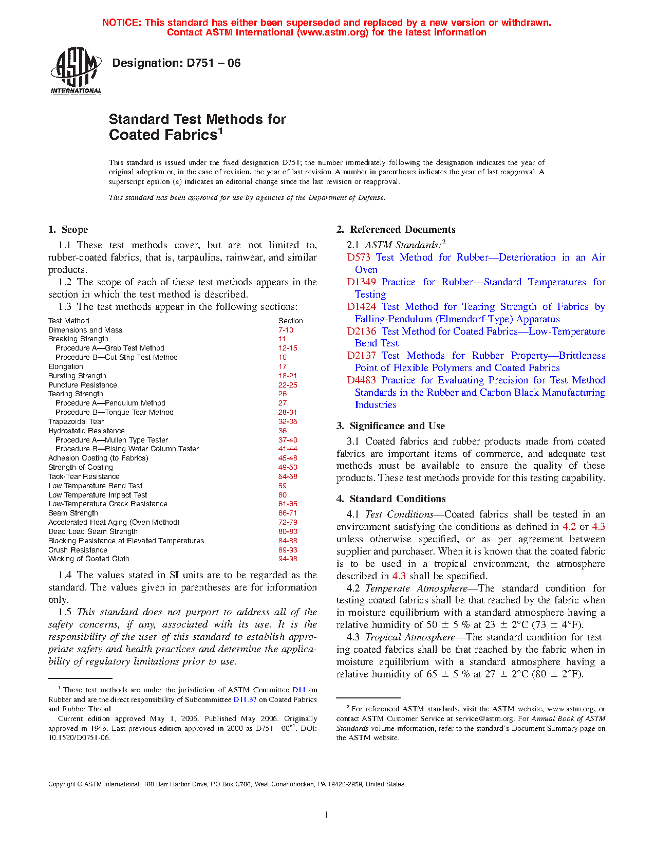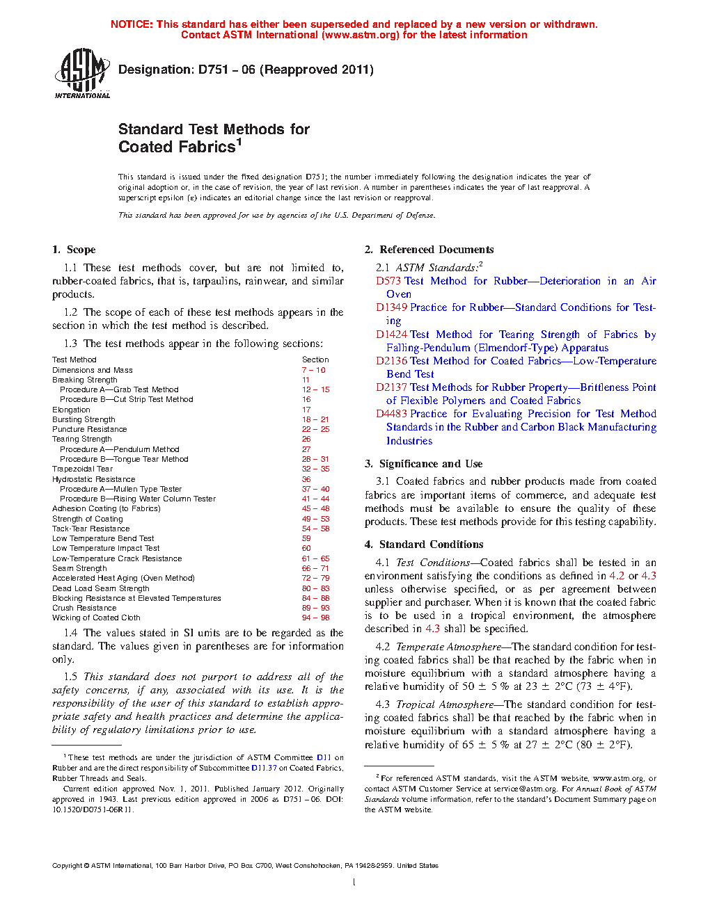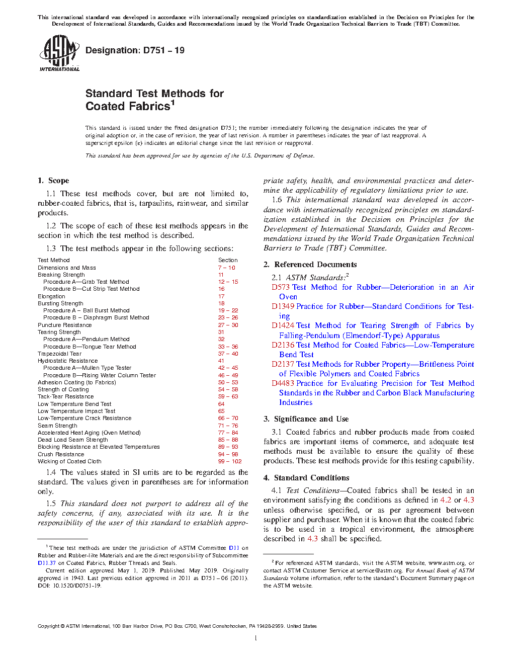 3.1 Coated fabrics and rubber products made from coated fabrics are important items of commerce, and adequate test methods must be available to ensure the quality of these products. These test methods provide for this testing capability.