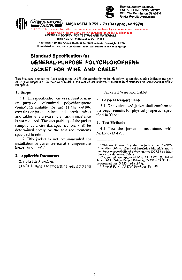Specification for General Purpose Polychloroprene Jacket for Wire and Cable (Withdrawn 1983)