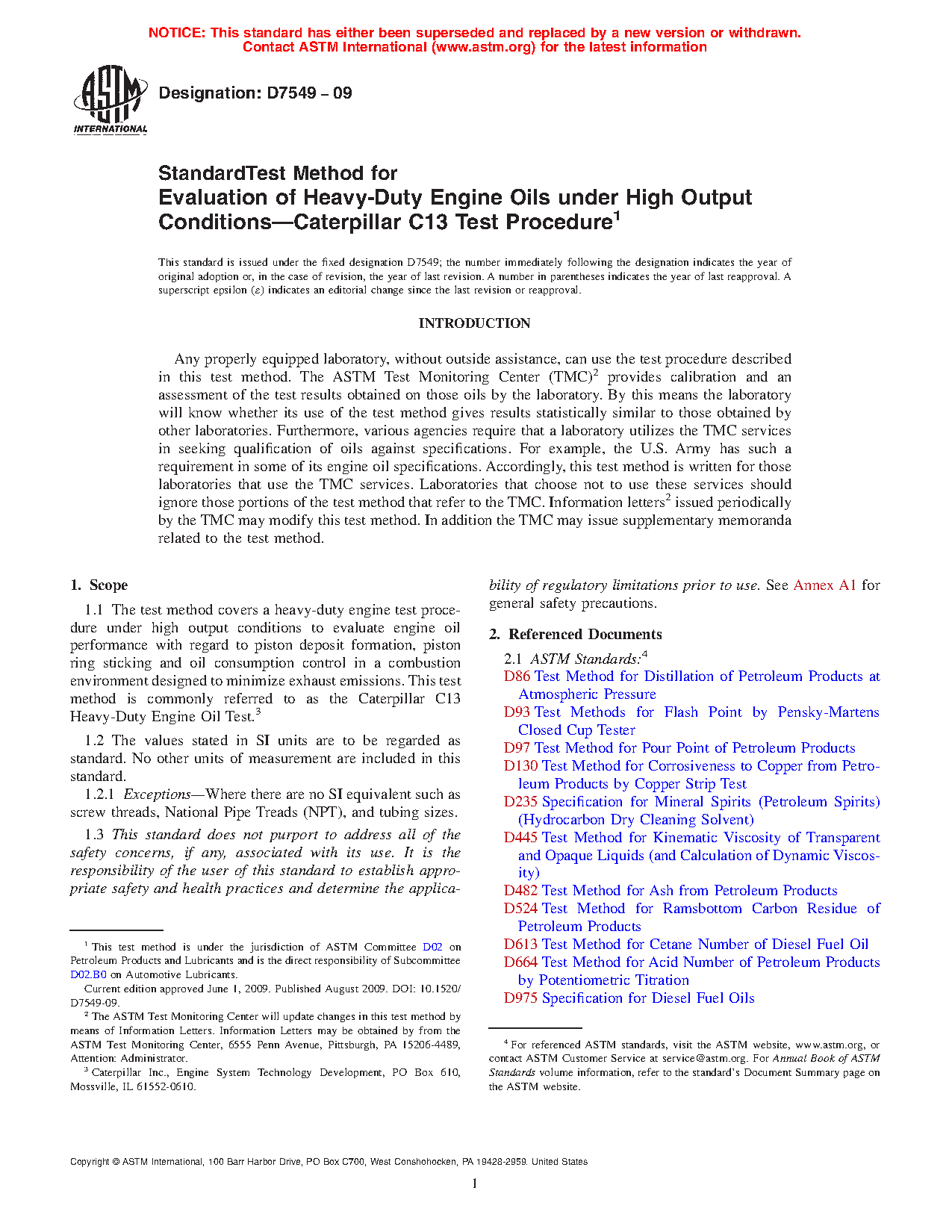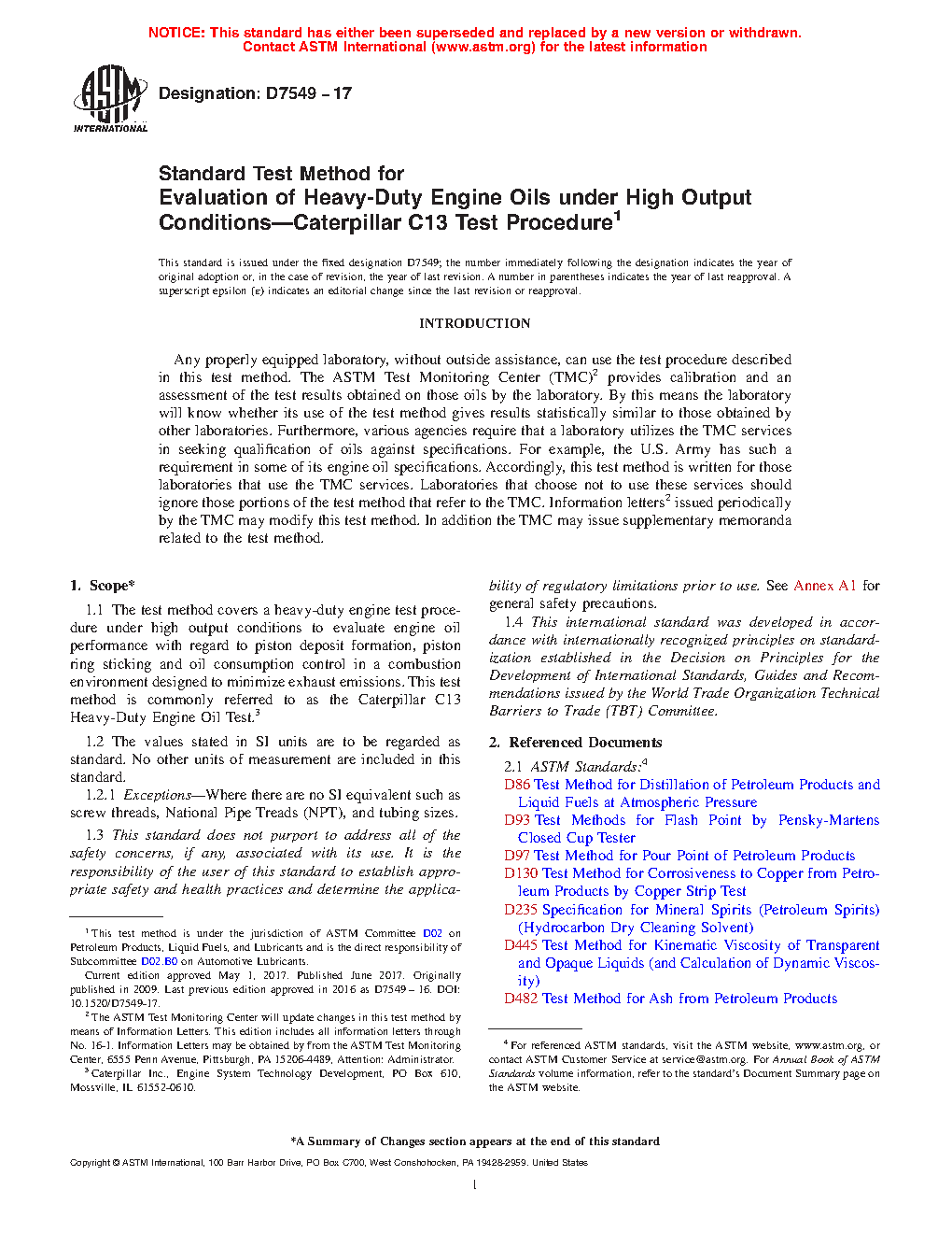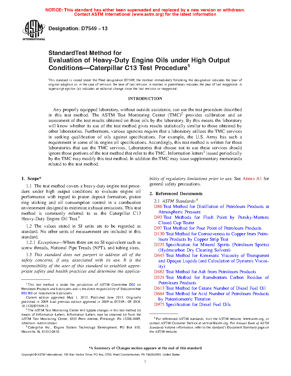 1.1 The test method covers a heavy-duty engine test procedure under high output conditions to evaluate engine oil performance with regard to piston deposit formation, piston ring sticking and oil consumption control in a combustion environment designed to minimize exhaust emissions. This test method is commonly referred to as the Caterpillar C13 Heavy-Duty Engine Oil Test.3