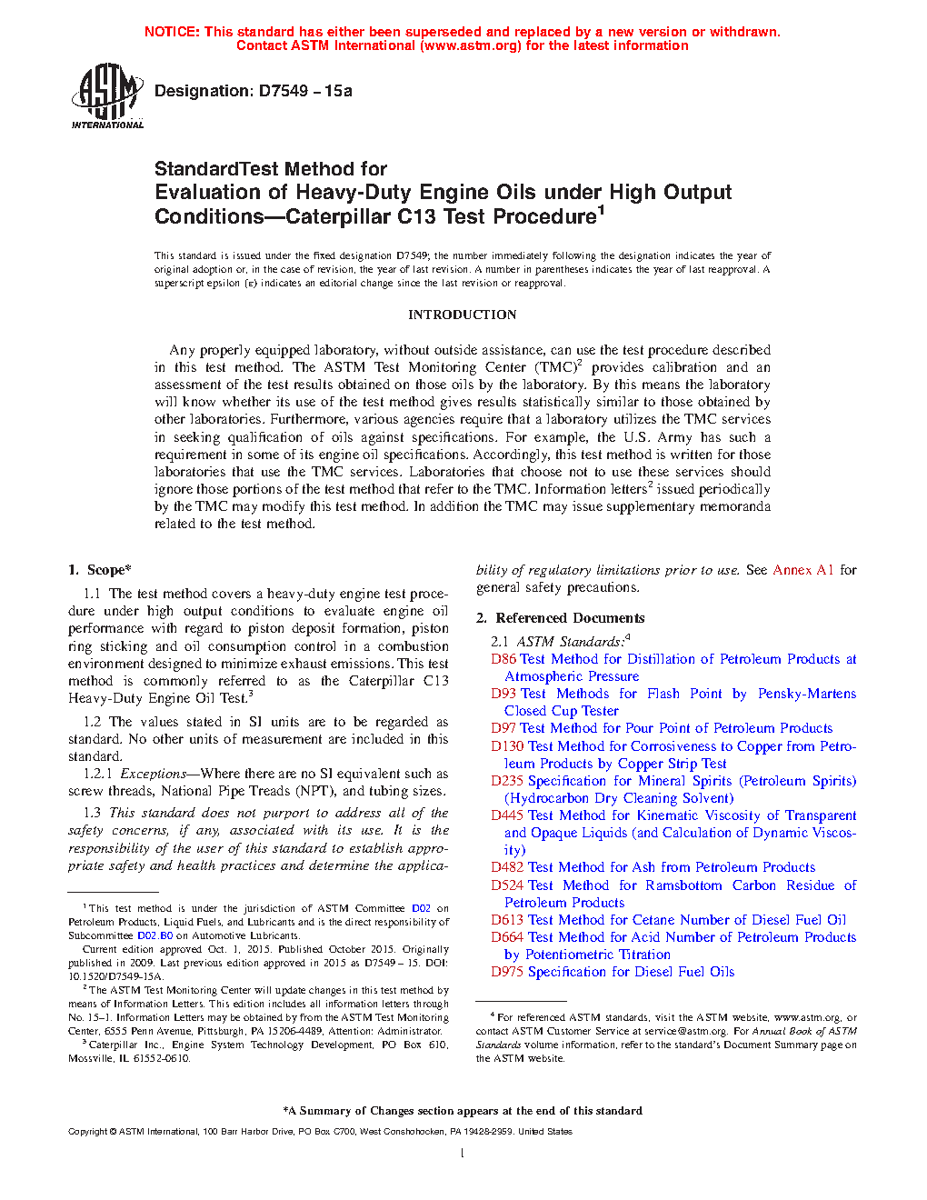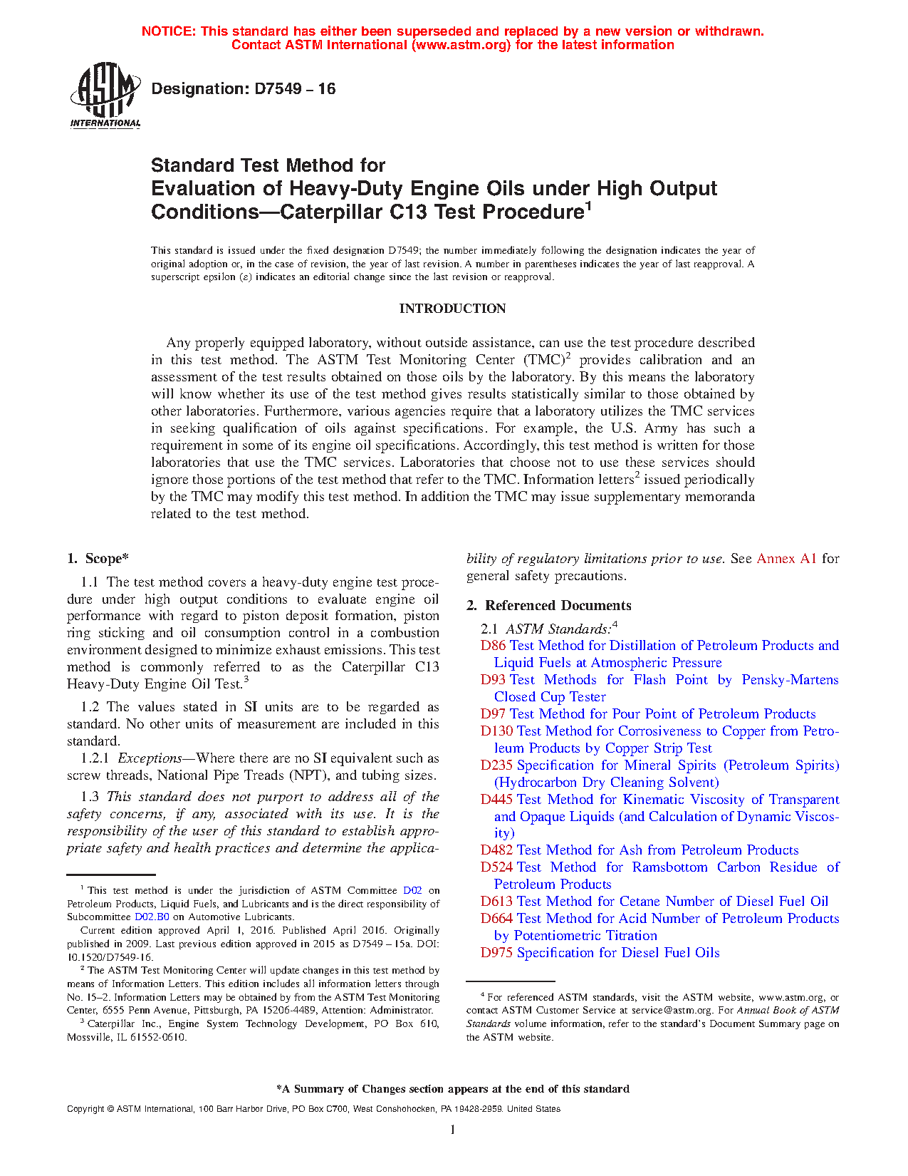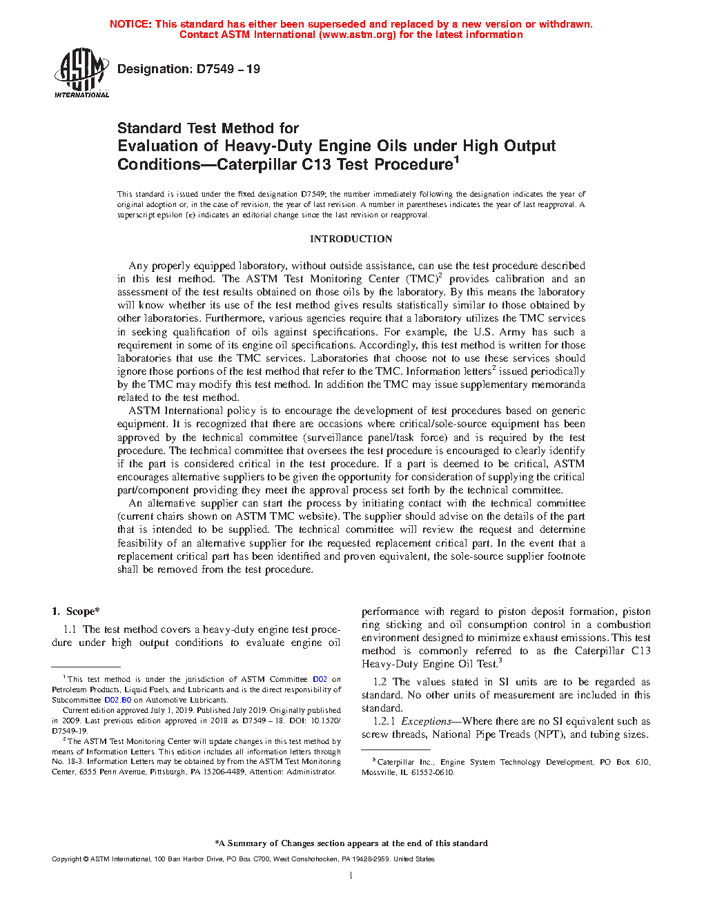 1.1 The test method covers a heavy-duty engine test procedure under high output conditions to evaluate engine oil performance with regard to piston deposit formation, piston ring sticking and oil consumption control in a combustion environment designed to minimize exhaust emissions. This test method is commonly referred to as the Caterpillar C13 Heavy-Duty Engine Oil Test.3
