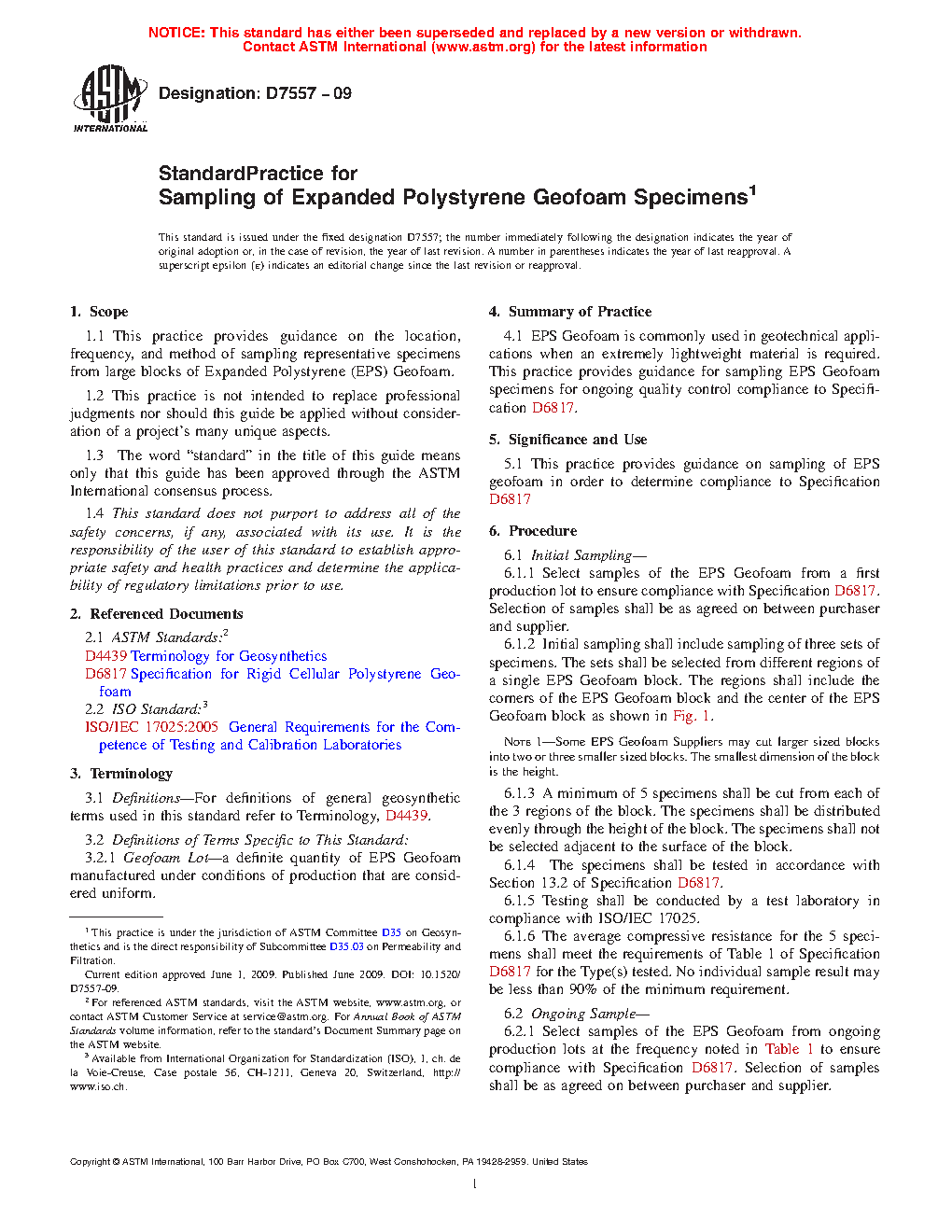 This practice provides guidance on sampling of EPS geofoam in order to determine compliance to Specification D 6817