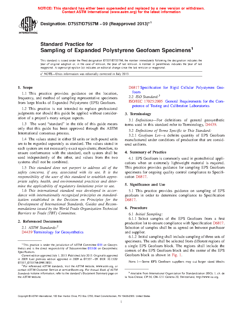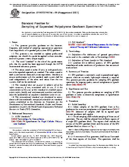 5.1 This practice provides guidance on sampling of EPS geofoam in order to determine compliance to Specification D6817.