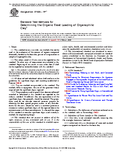 5.1 This standard test method is intended as an index test to determine the organic treat loading of organophilic clay. This standard test method can be used for manufacturing quality control and construction quality assurance material evaluation.