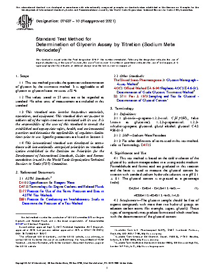 1.1 This test method provides the quantitative determination of glycerin by the titrimetric method. It is applicable to all glycerin or glycerin/water mixtures >75 %.