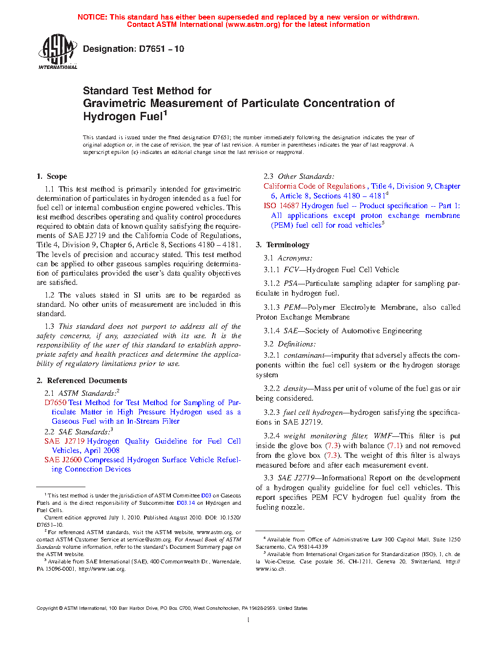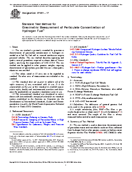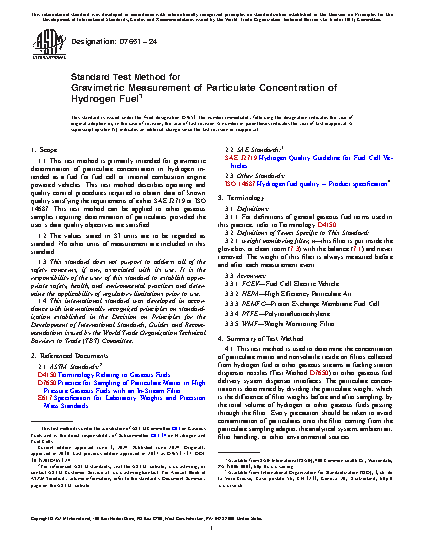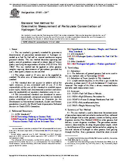 1.1 This test method is primarily intended for gravimetric determination of particulate concentration in hydrogen intended as a fuel for fuel cell or internal combustion engine powered vehicles. This test method describes operating and quality control procedures required to obtain data of known quality satisfying the requirements of either SAE J2719 or ISO 14687. This test method can be applied to other gaseous samples requiring determination of particulates provided the user’s data quality objectives are satisfied.