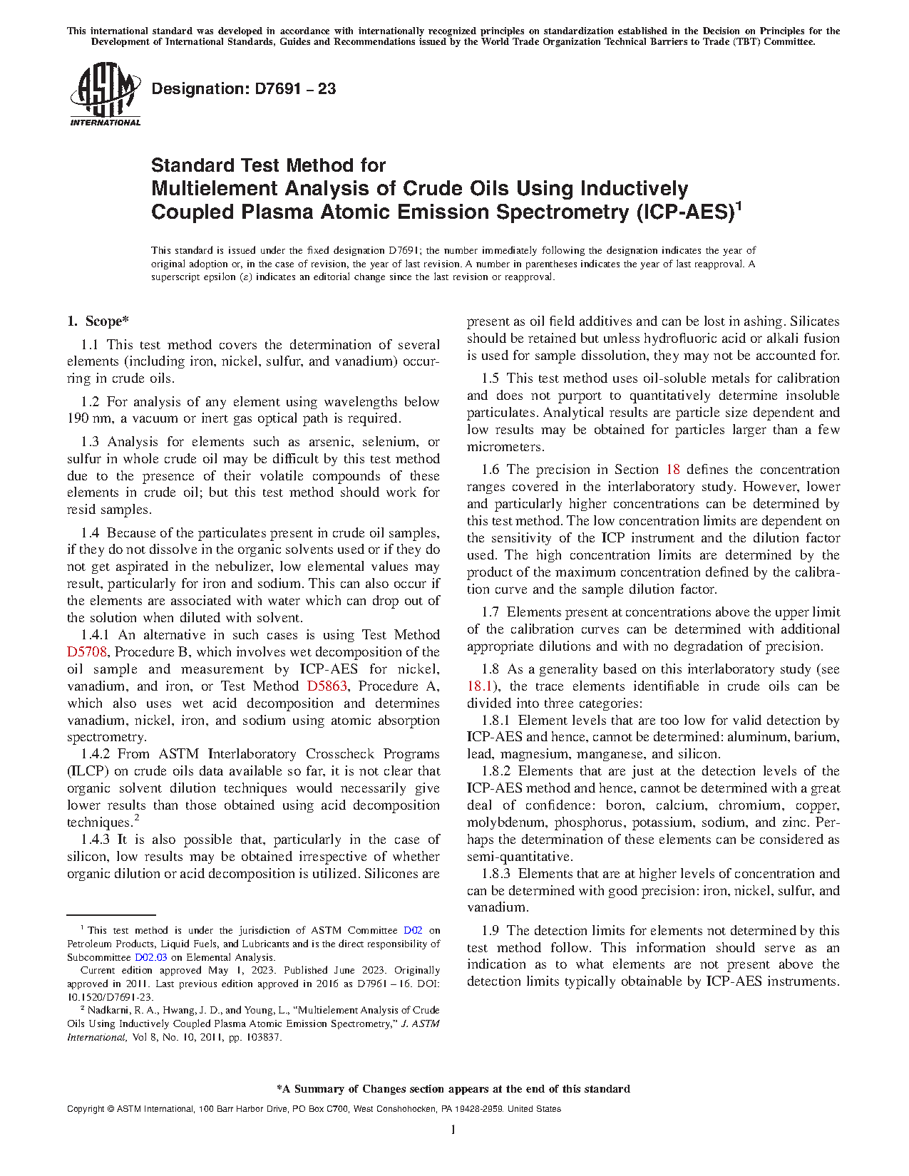 1.4.2 From ASTM Interlaboratory Crosscheck Programs (ILCP) on crude oils data available so far, it is not clear that organic solvent dilution techniques would necessarily give lower results than those obtained using acid decomposition techniques.2