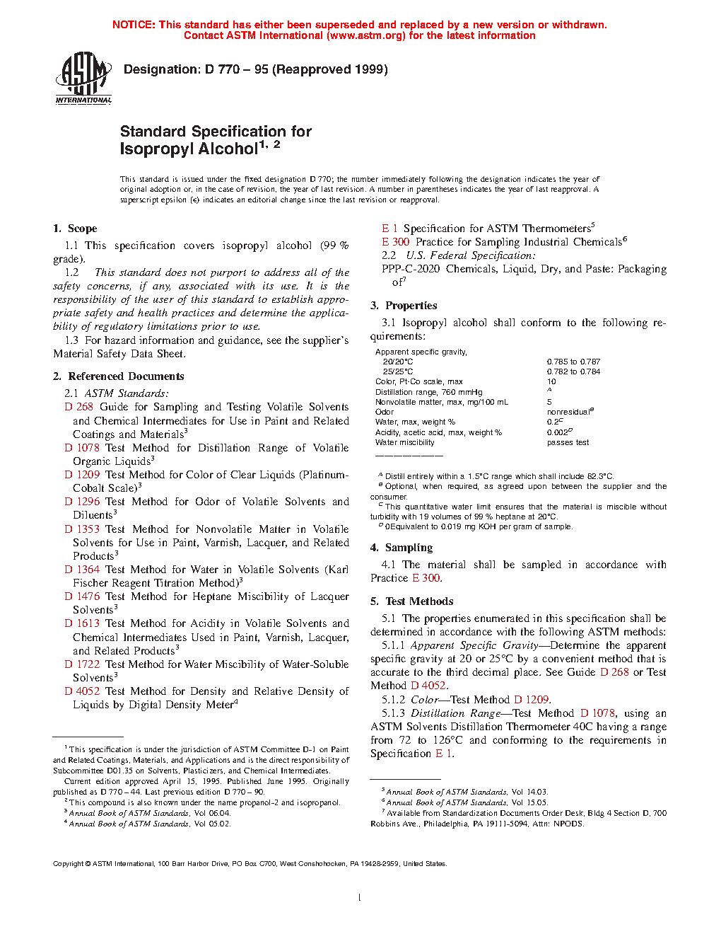 1.1 This specification covers isopropyl alcohol (99 % grade).