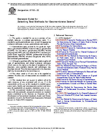 1.1 This guide is intended for use as a summary of test methods necessary to evaluate geomembrane seams. It is intended to guide geomembrane users toward the appropriate evaluation techniques to assess geomembrane seam quality.