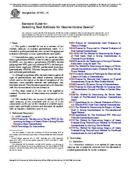 1.3 Although a significant effort has been made to gather all types of geomembranes and related evaluation techniques which were on the market at the date of completion of this document, some available materials and technologies may have been omitted. The information presented in this document shall thus be considered to be non exhaustive.
