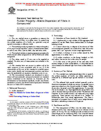 1.3 The method includes a sample preparation procedure for filled uncured rubber compounds as well as filled cured rubber compounds.