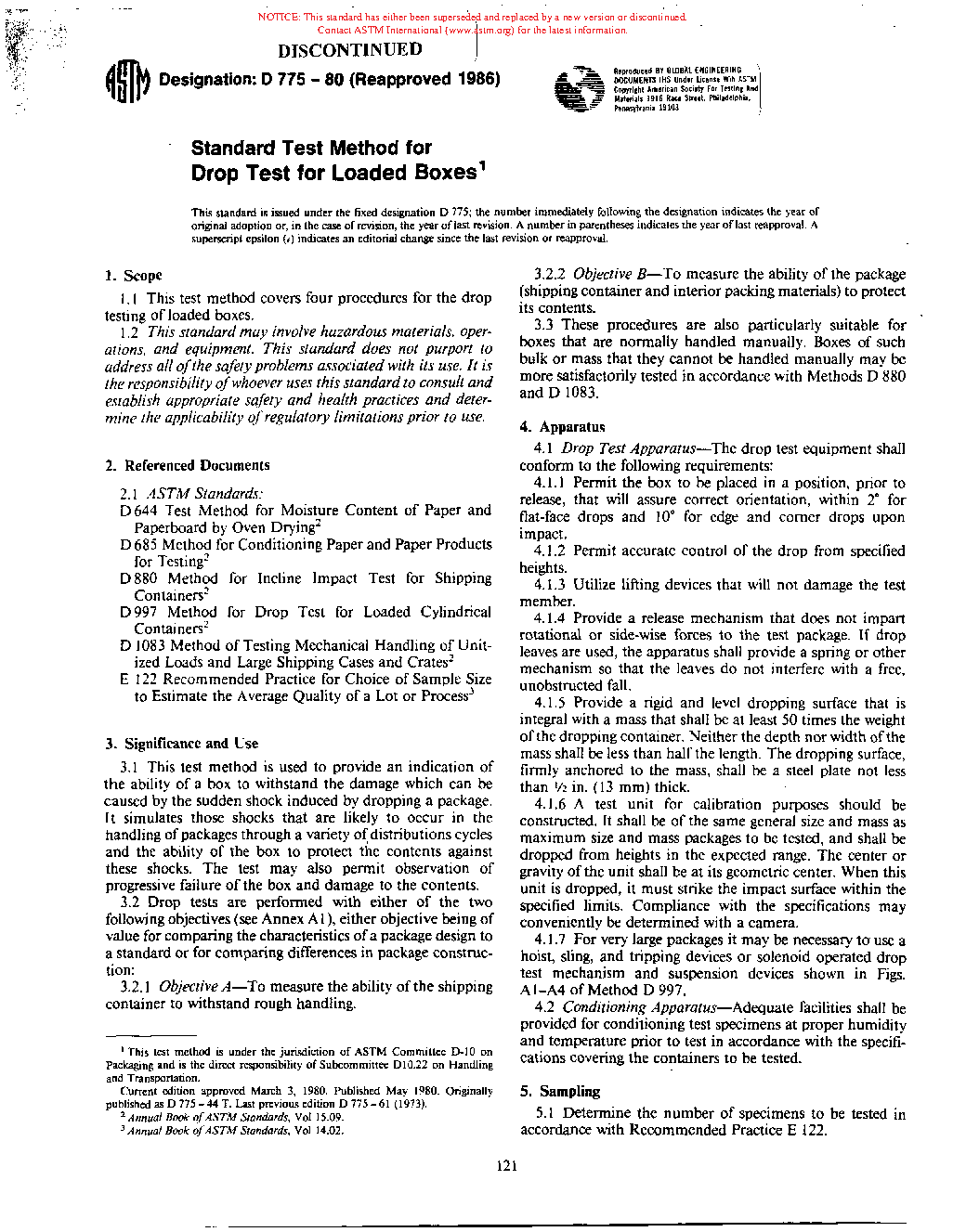 Method for Drop Test for Loaded Boxes (Withdrawn 1993)
