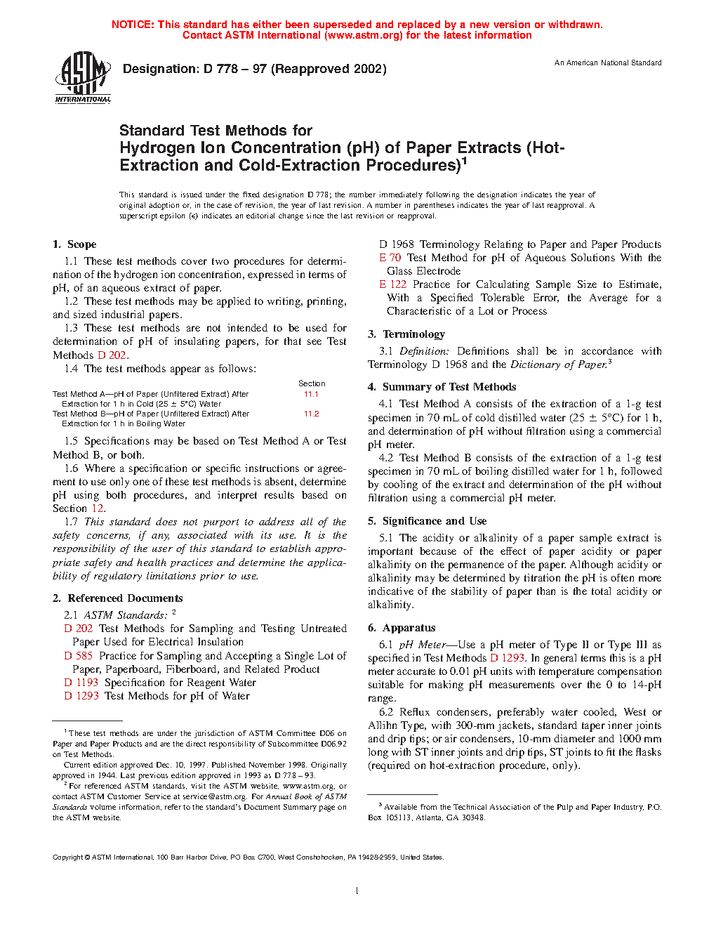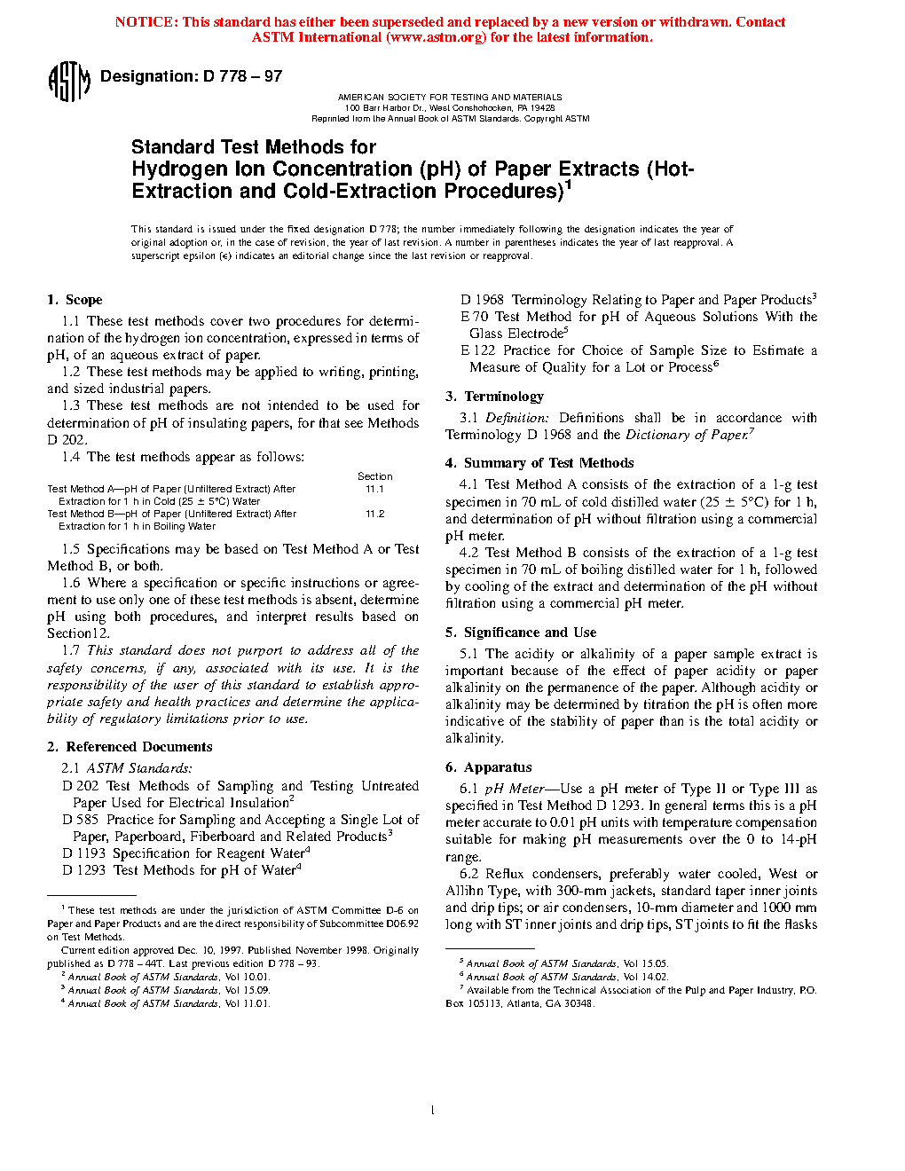1.3 These test methods are not intended to be used for determination of pH of insulating papers, for that see Test Methods D 202