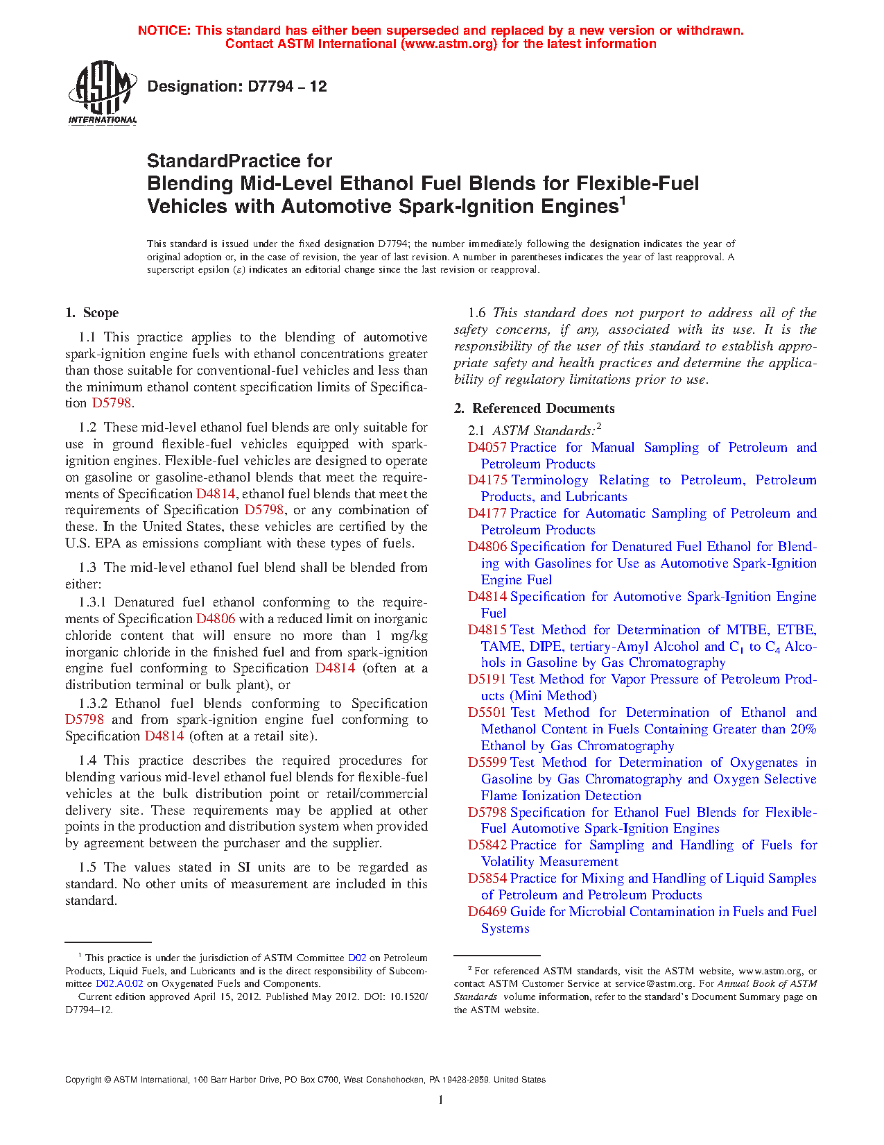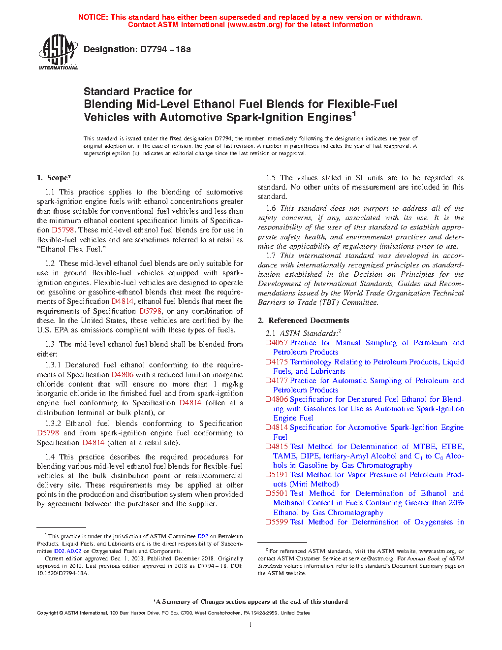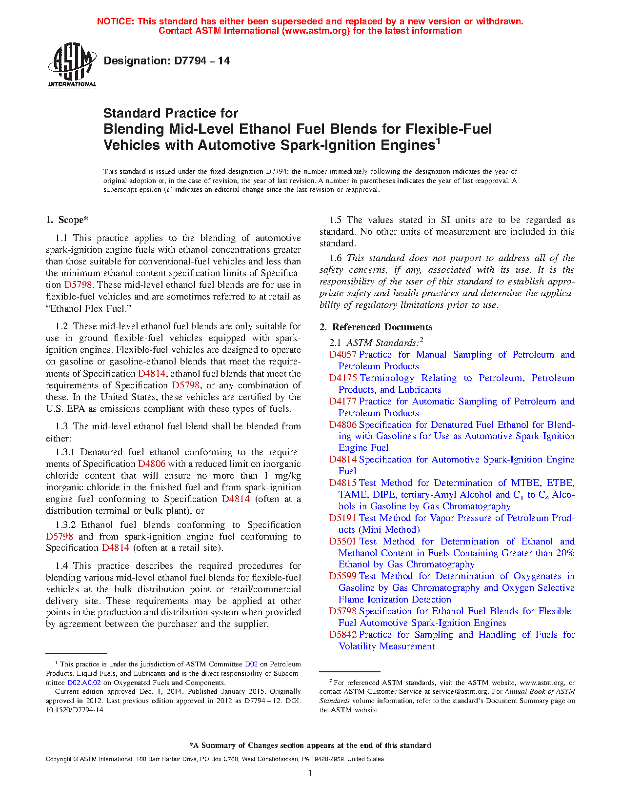 1.3.2 Ethanol fuel blends conforming to Specification D5798 and from spark-ignition engine fuel conforming to Specification D4814 (often at a retail site).