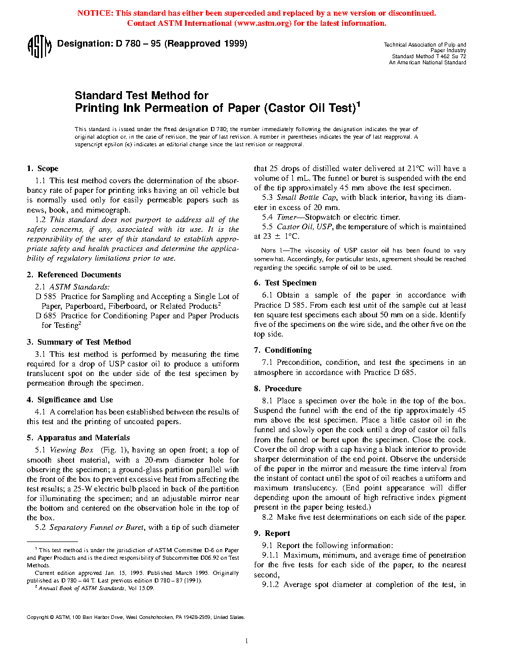 Standard Test Method for Printing Ink Permeation of Paper (Castor Oil Test)