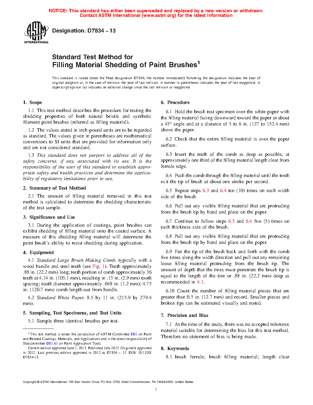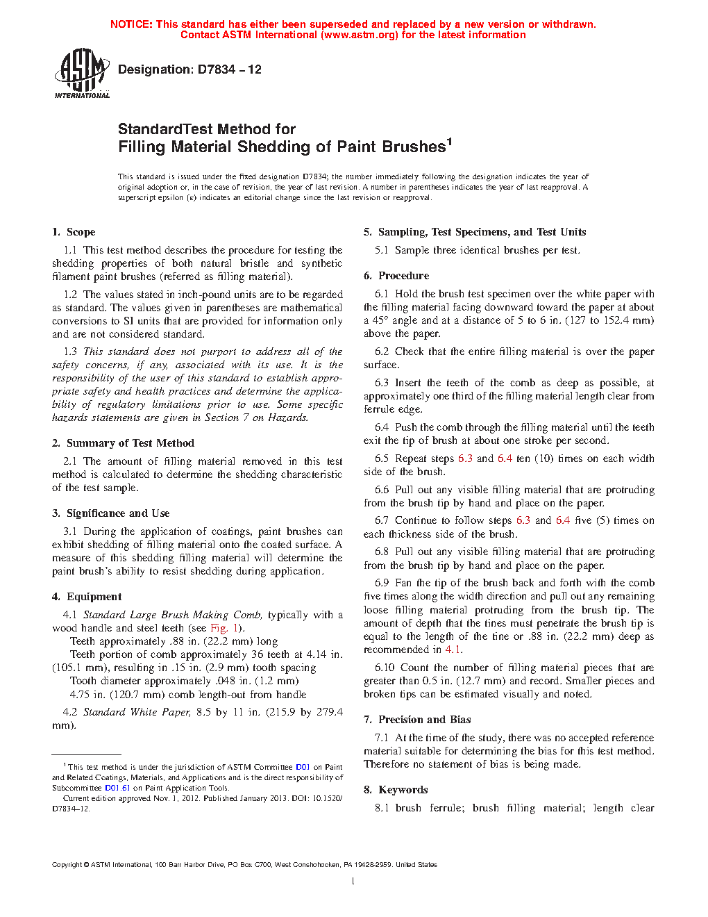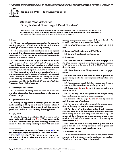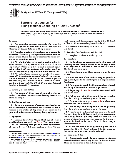 1.1 This test method describes the procedure for testing the shedding properties of both natural bristle and synthetic filament paint brushes (referred as filling material).