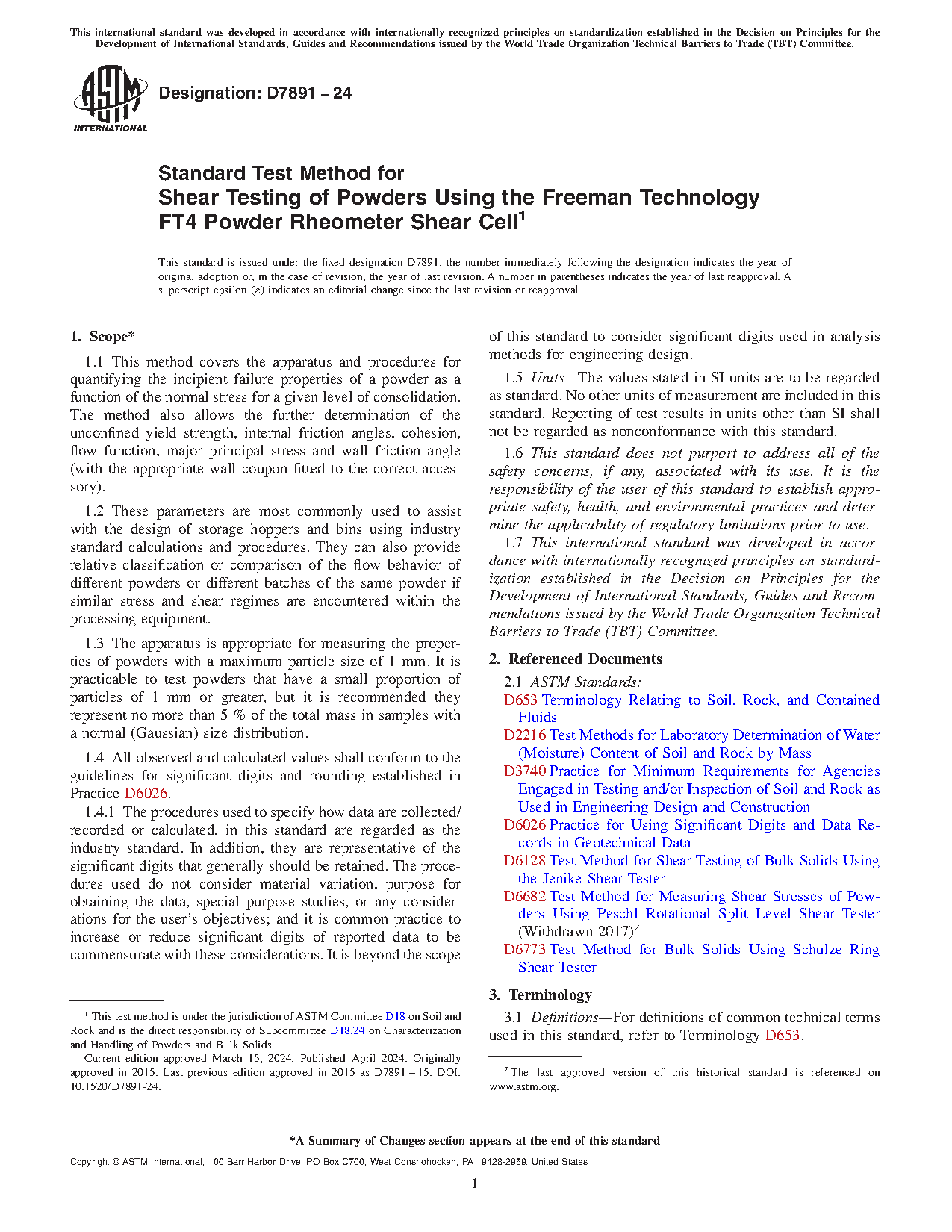 5.1.3 Quality Control—The test can, in some circumstances, be used to assess the flow properties of a raw material, intermediate or product against pre-determined acceptance criteria.