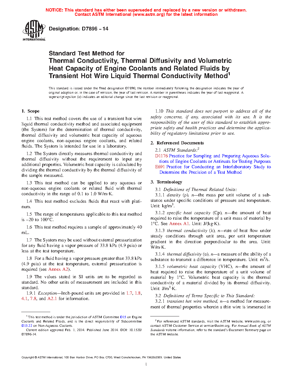1.3 This test method can be applied to any aqueous or non-aqueous engine coolants or related fluid with thermal conductivity in the range of 0.1 to 1.0 W/m∙K.
