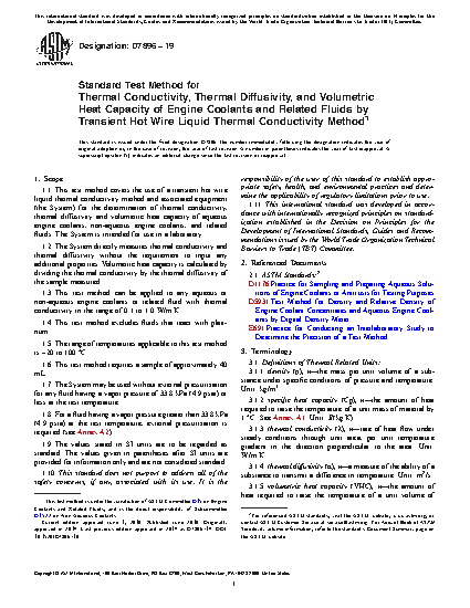5.1 This test method covers the measurement of thermal properties for engine coolants (aqueous or non-aqueous) and related fluids.