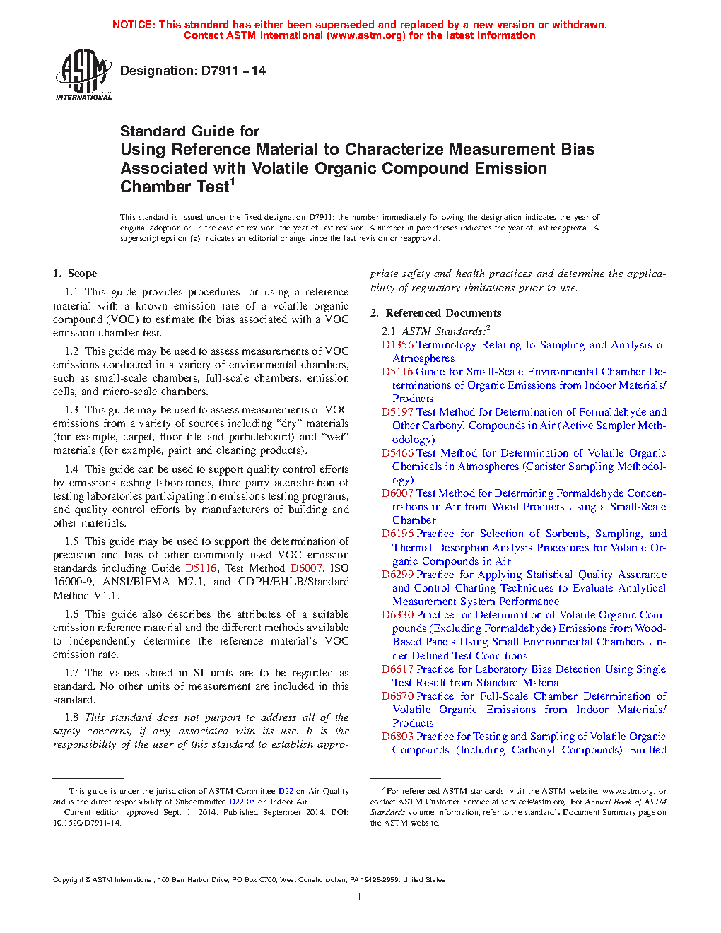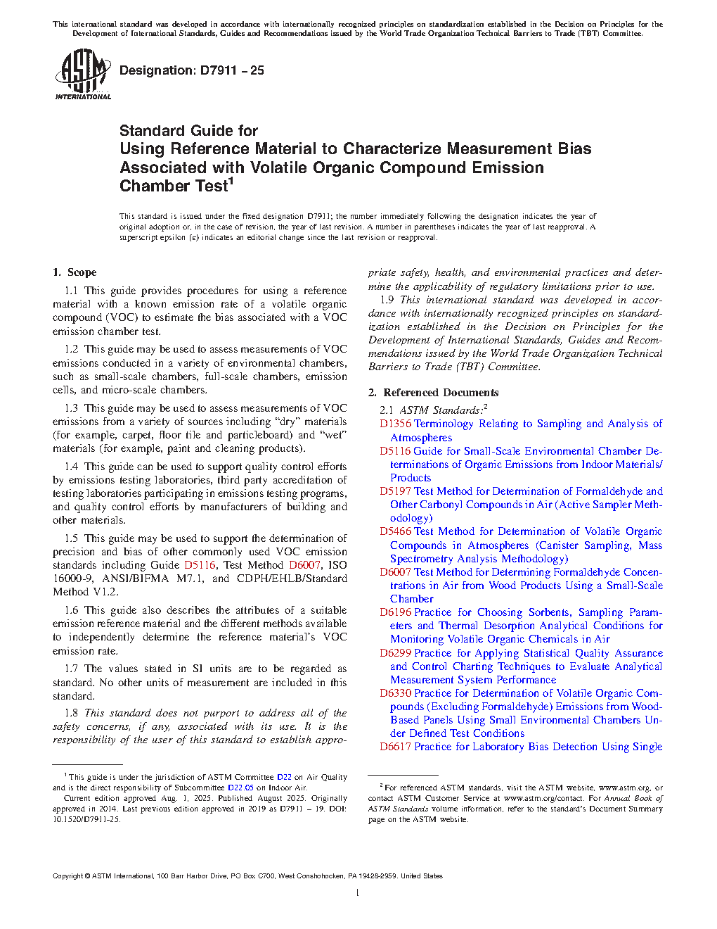 1.6 This guide also describes the attributes of a suitable emission reference material and the different methods available to independently determine the reference material’s VOC emission rate.