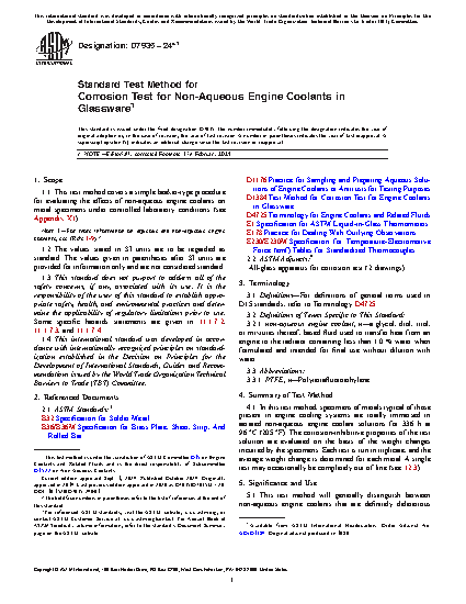 1.1 This test method covers a simple beaker-type procedure for evaluating the effects of non-aqueous engine coolants on metal specimens under controlled laboratory conditions (see Appendix X1).