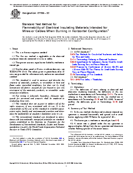 5.3 This test method is used to assess the horizontal flame test performance of electrical insulation materials in Test Methods D470.