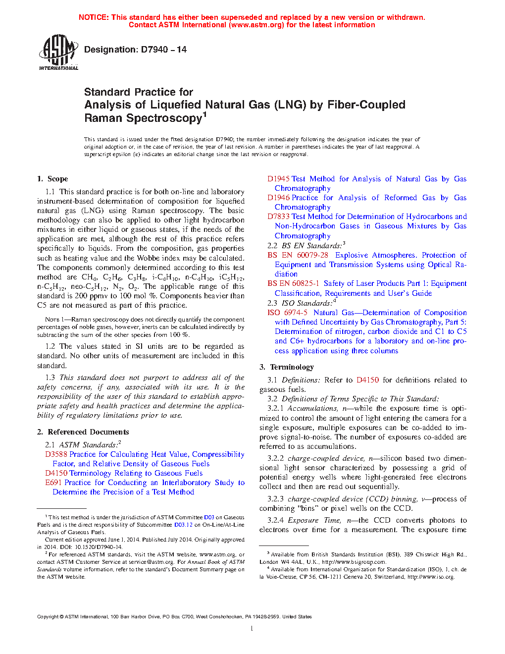 5.2 Alternatives to compositional measurement using Raman spectroscopy are described in Test Method D1945, Practice D1946, and Test Method D7833.