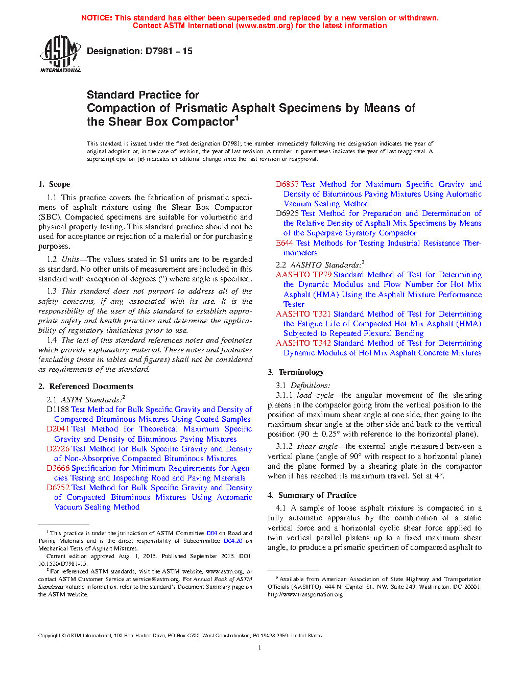 5.1 Asphalt prisms compacted with the Shear Box Compactor can be used to obtain specimens for further testing, including bulk specific gravity following Test Methods D6752 and D2726, Dynamic modulus following AASHTO T342, dynamic modulus, flow number, and flow time following AASHTO TP79, and fatigue performance characteristics following AASHTO T321.
