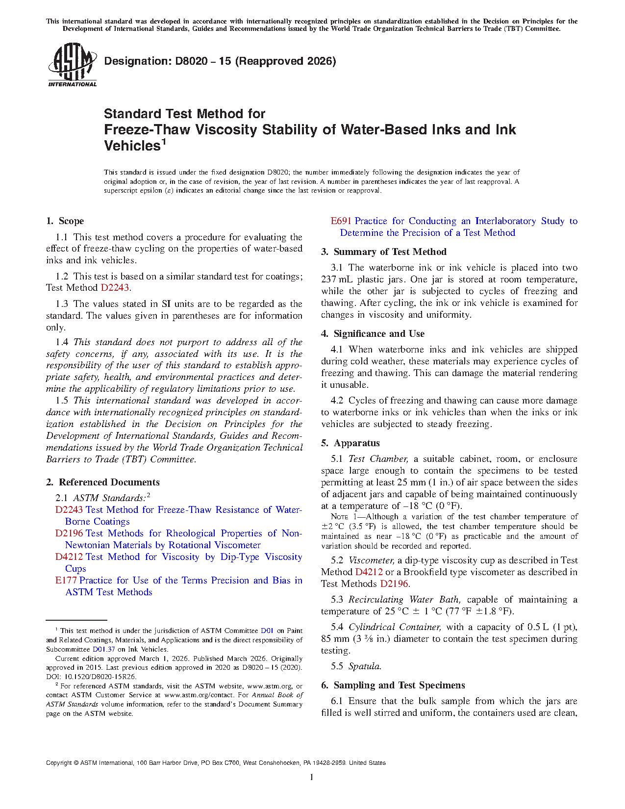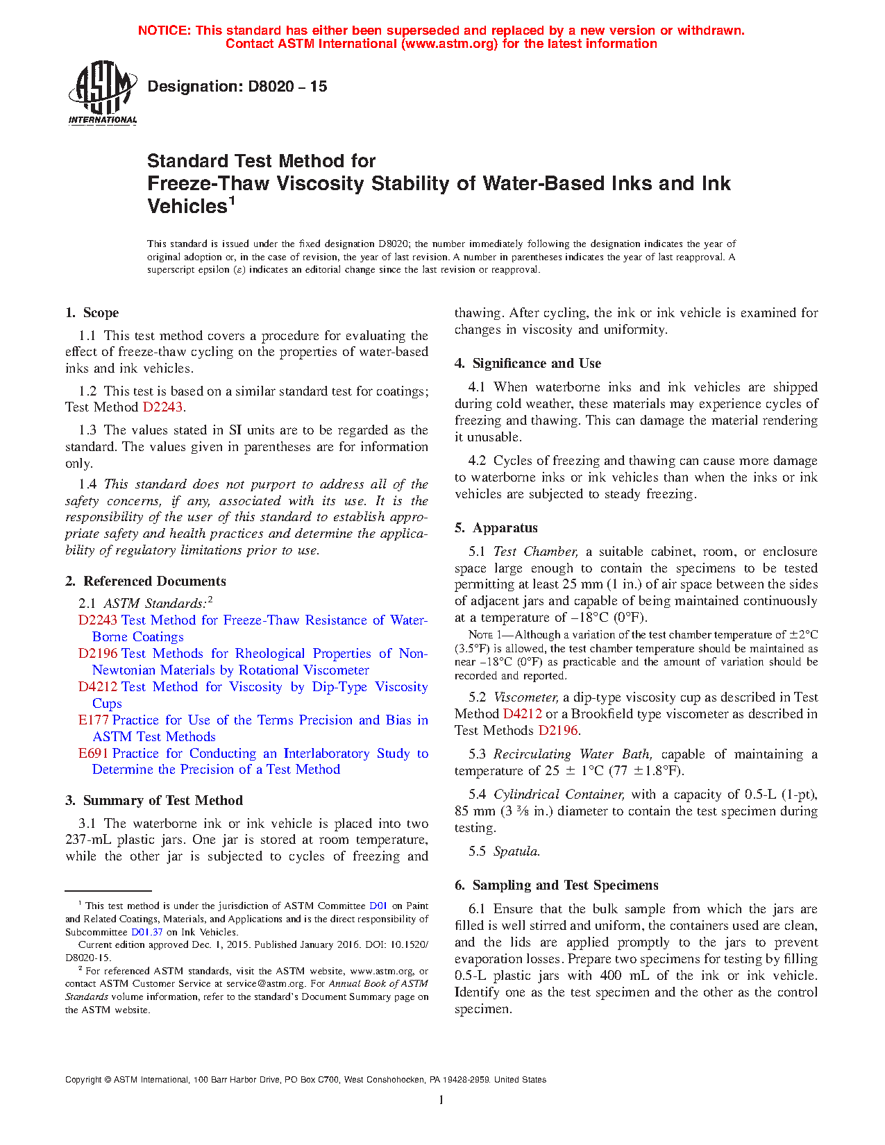 1.1 This test method covers a procedure for evaluating the effect of freeze-thaw cycling on the properties of water-based inks and ink vehicles.