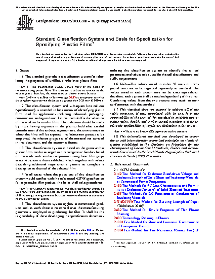 Note 1: The classification system serves many of the needs of industries using plastic films. The standard is subject to revision as the need requires; therefore, the latest revision should always be used.