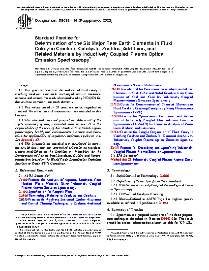 1.1 This practice describes the analysis of fluid catalytic cracking catalysts, rare earth exchanged zeolitic materials, additive and related materials when analyzed by ICP-OES for the six most common rare earth elements.