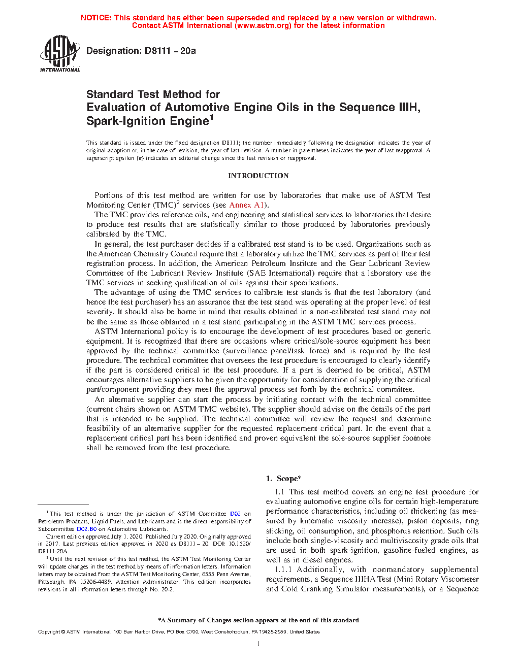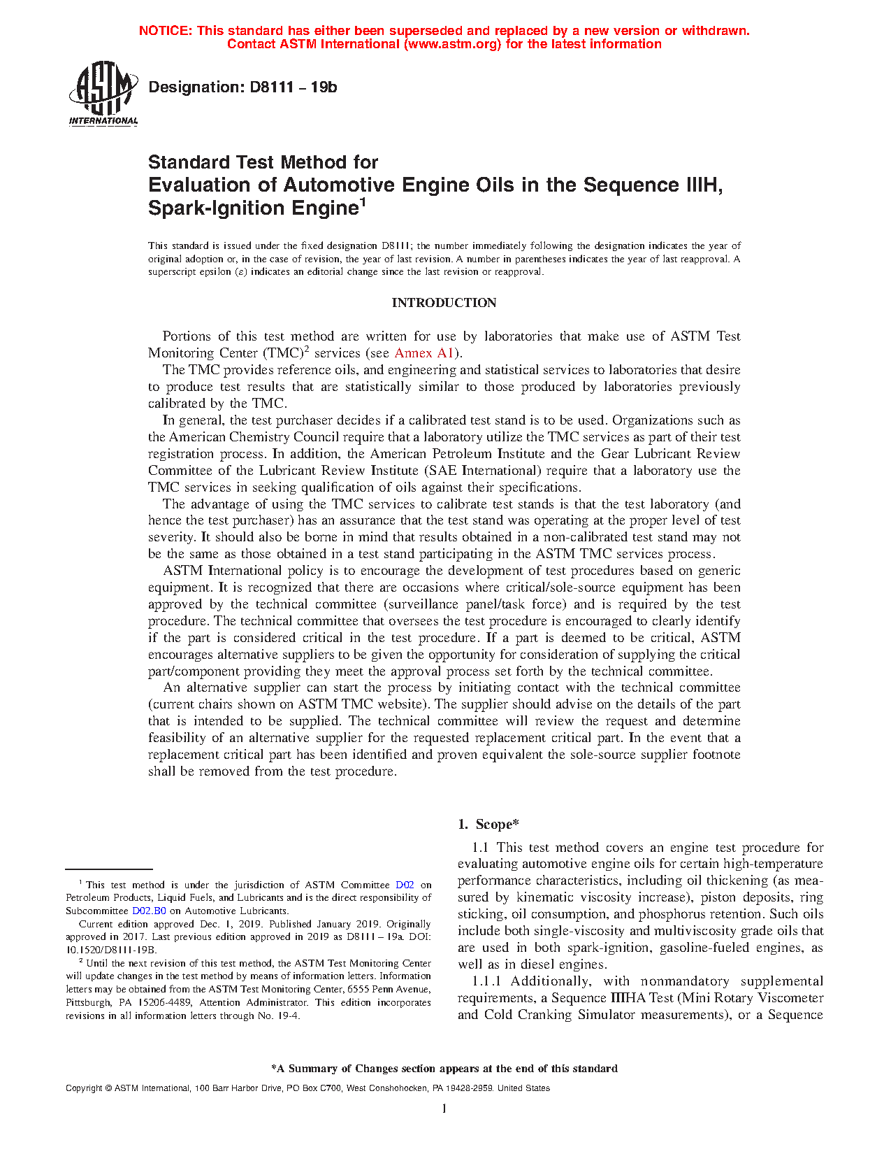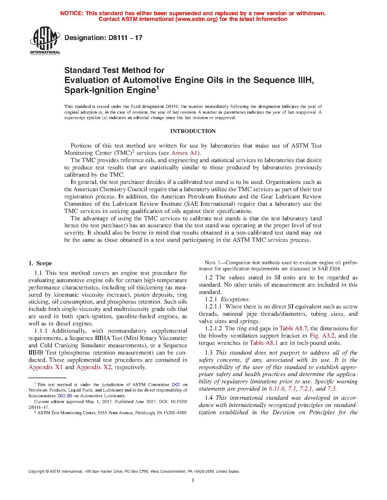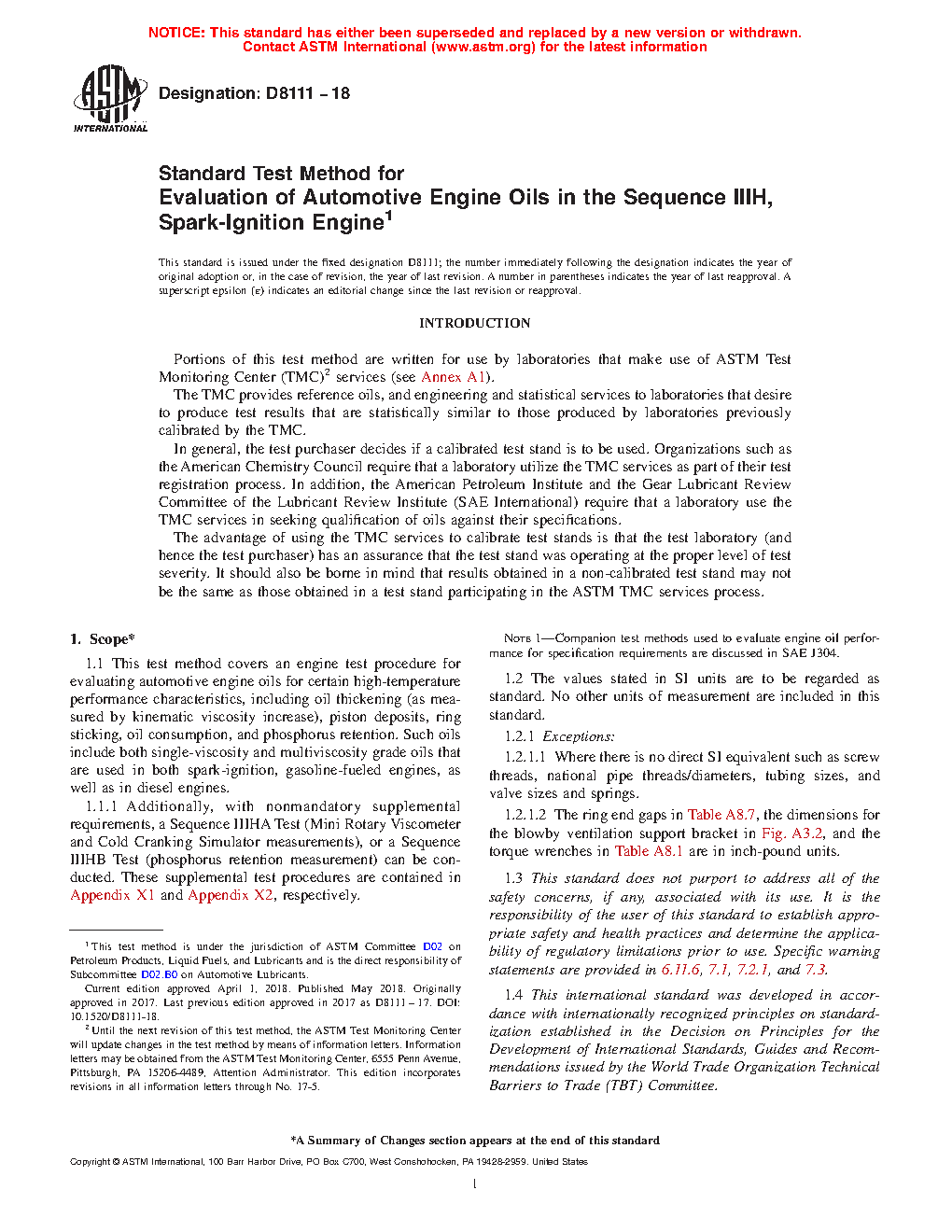 5.3 The Sequence IIIH engine oil test has been recommended as a replacement for the Sequence IIIG test and is expected to be used in specifications and classifications of engine lubricating oils, such as the following: