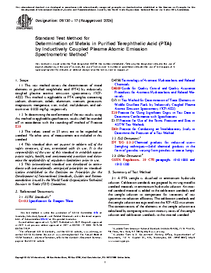 4.2 Determination of the metals in PTA is often required. This test method is suitable for setting specifications and for use as an internal quality control where these products are produced or used.