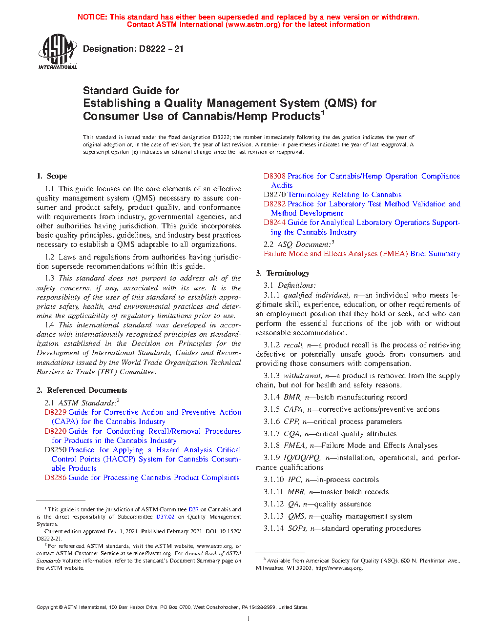 1.1 This guide focuses on the core elements of an effective quality management system (QMS) necessary to assure consumer and product safety, product quality, and conformance with requirements from industry, governmental agencies, and other authorities having jurisdiction. This guide incorporates basic quality principles, guidelines, and industry best practices necessary to establish a QMS adaptable to all organizations.