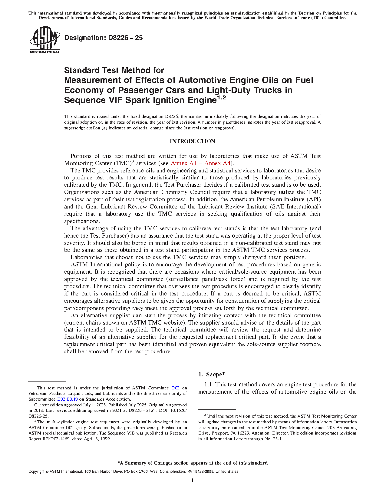 5.2 Use—The Sequence VIF test method is useful for engine oil fuel economy specification acceptance. It is used in specifications and classifications of engine lubricating oils, such as the following: