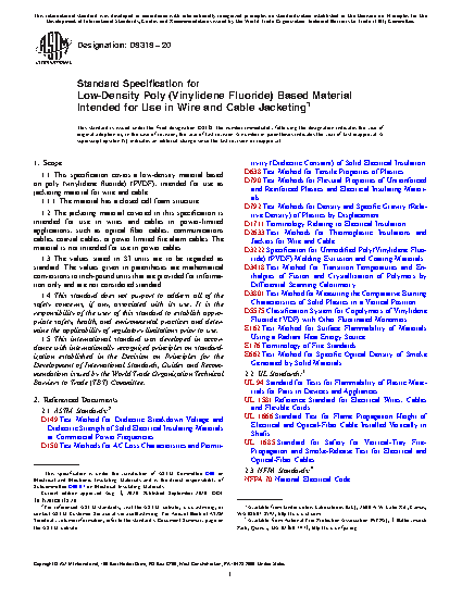 1.1 This specification covers a low-density material based on poly (vinylidene fluoride) (PVDF), intended for use as jacketing material for wire and cable.