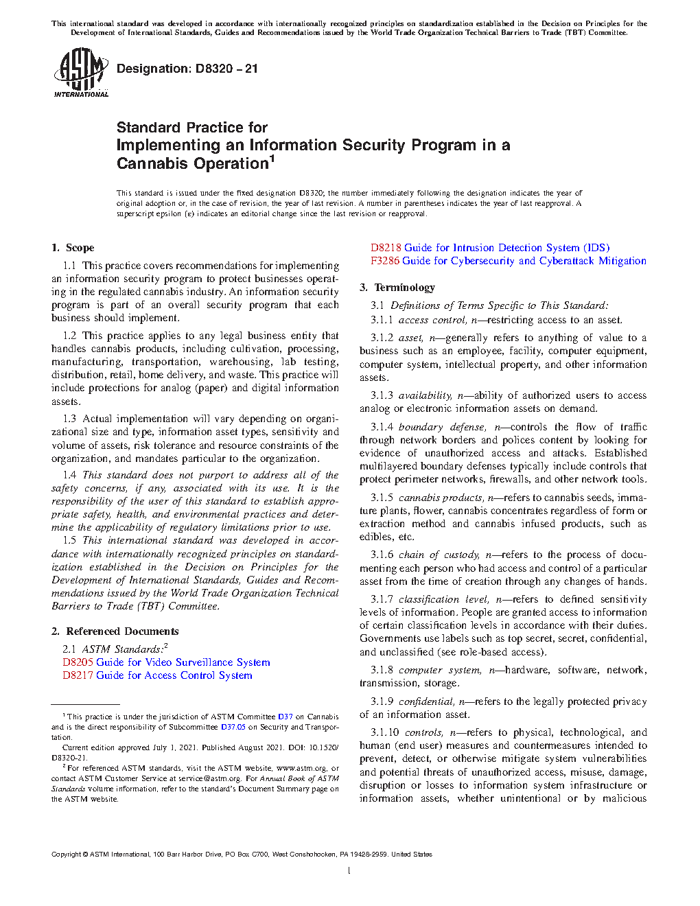 1.2 This practice applies to any legal business entity that handles cannabis products, including cultivation, processing, manufacturing, transportation, warehousing, lab testing, distribution, retail, home delivery, and waste. This practice will include protections for analog (paper) and digital information assets.