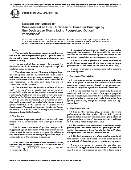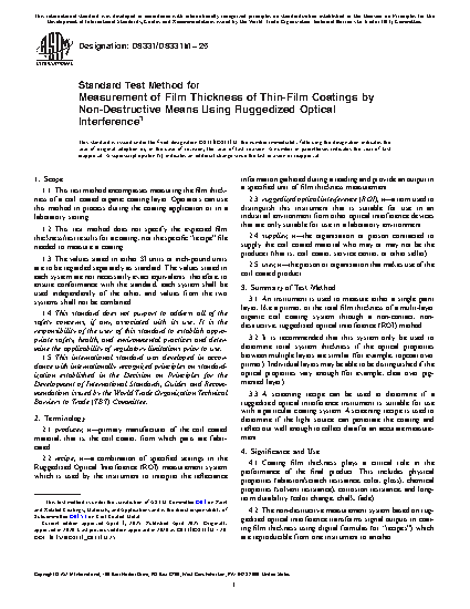 1.1 This test method encompasses measuring the film thickness of a coil coated organic coating layer. Operators can use this method in process during the coating application or in a laboratory setting.
