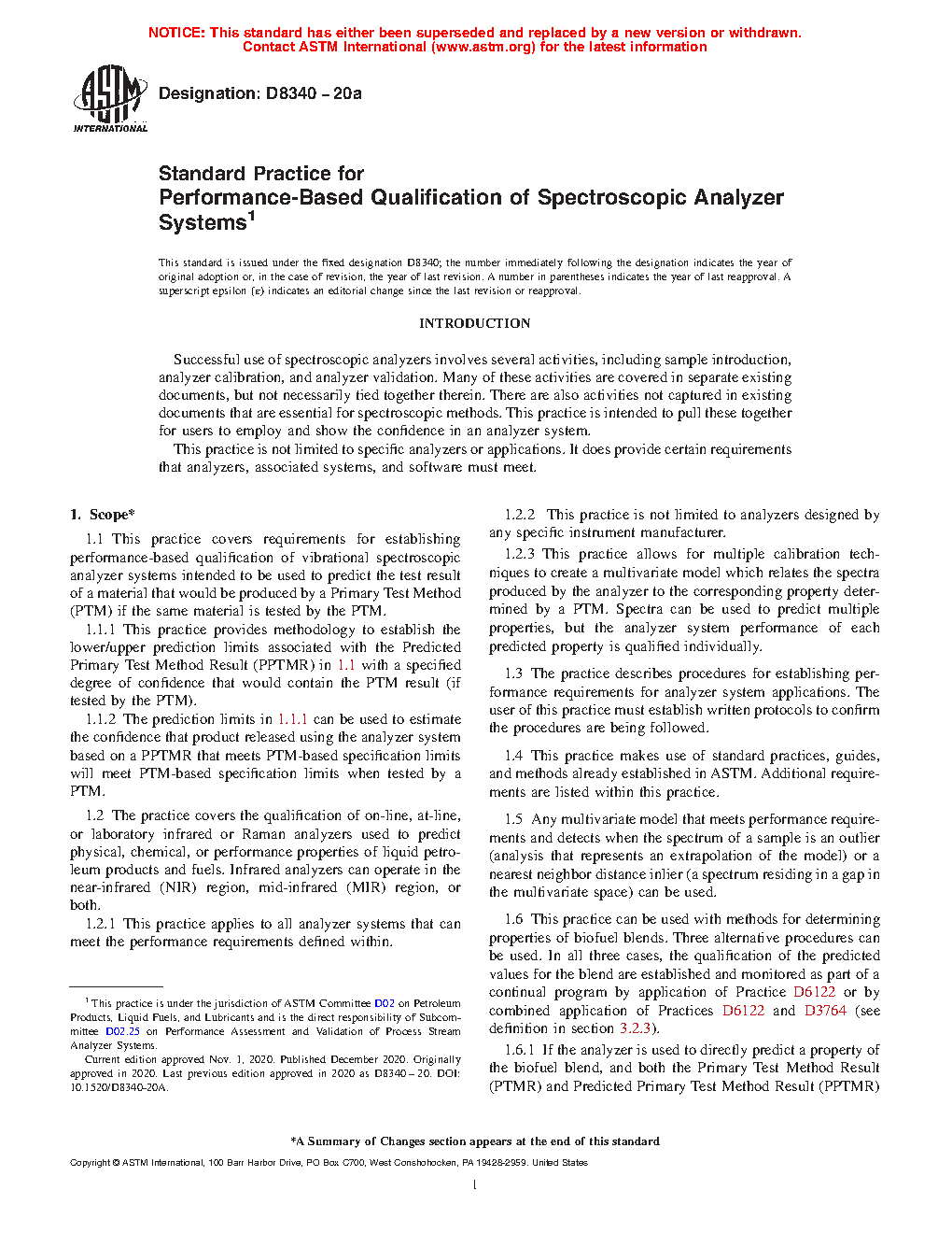 1.2 The practice covers the qualification of on-line, at-line, or laboratory infrared or Raman analyzers used to predict physical, chemical, or performance properties of liquid petroleum products and fuels. Infrared analyzers can operate in the near-infrared (NIR) region, mid-infrared (MIR) region, or both.