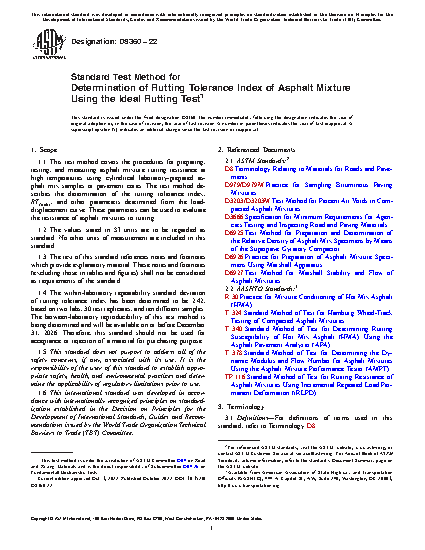 1.4 The within-laboratory repeatability standard deviation of rutting tolerance index has been determined to be 2.42, based on two labs, 30 test replicates, and ten different samples. The between-laboratory reproducibility of this test method is being determined and will be available on or before December 31, 2026. Therefore, this standard should not be used for acceptance or rejection of a material for purchasing purpose.