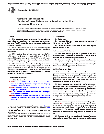 1.1 This test method is used to determine the non-isothermal stress relaxation, also known as temperature scanning stress relaxation (TSSR). Stress relaxation is a characteristic behavior of rubber materials.