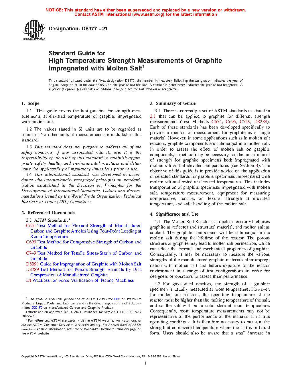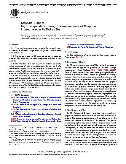 1.1 This guide covers the best practice for strength measurements at elevated temperature of graphite impregnated with molten salt.