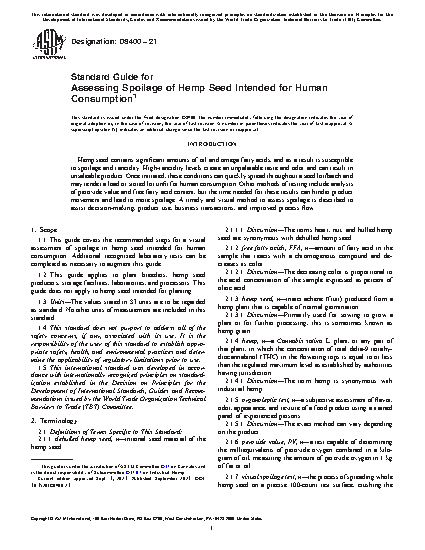 1.1 This guide covers the recommended steps for a visual assessment of spoilage in hemp seed intended for human consumption. Additional recognized laboratory tests can be completed as necessary to augment this guide.