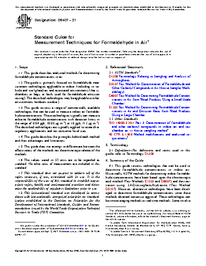 1.1 This guide describes analytical methods for determining formaldehyde concentrations in air.