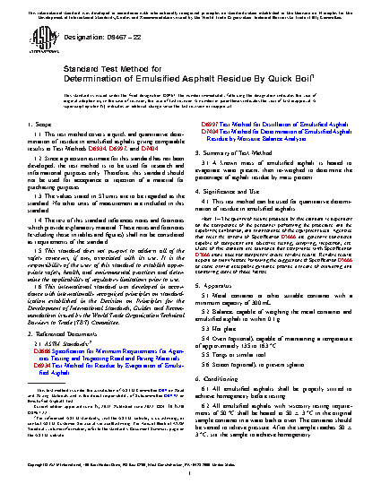 4.1 This test method can be used for quantitative determination of residue in emulsified asphalts.
