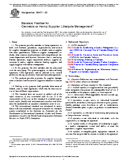 4.1 This practice is intended to be used by cannabis or hemp operators, or both, to establish good supplier lifecycle management practices.