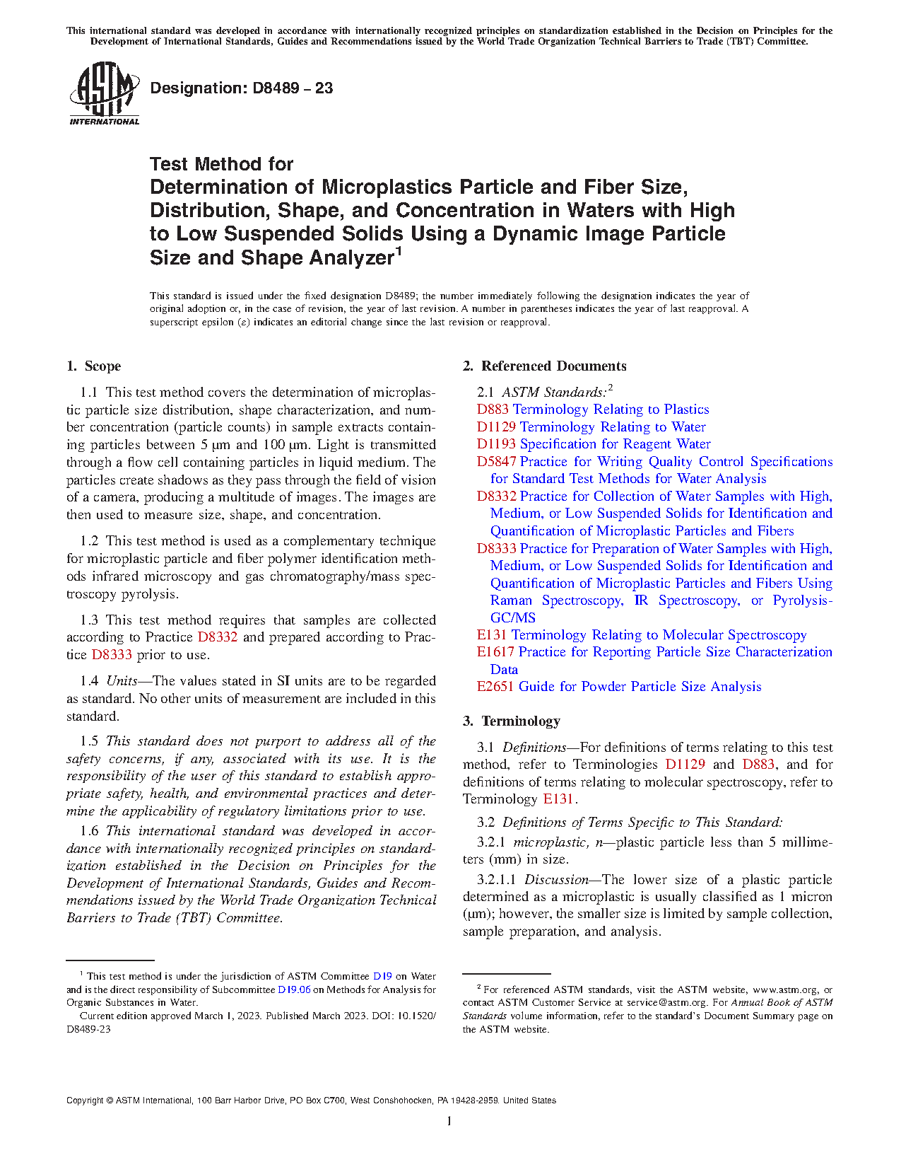 1.6 This international standard was developed in accordance with internationally recognized principles on standardization established in the Decision on Principles for the Development of International Standards, Guides and Recommendations issued by the World Trade Organization Technical Barriers to Trade (TBT) Committee.