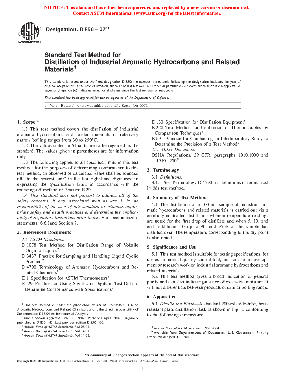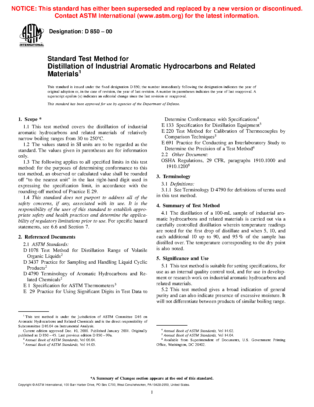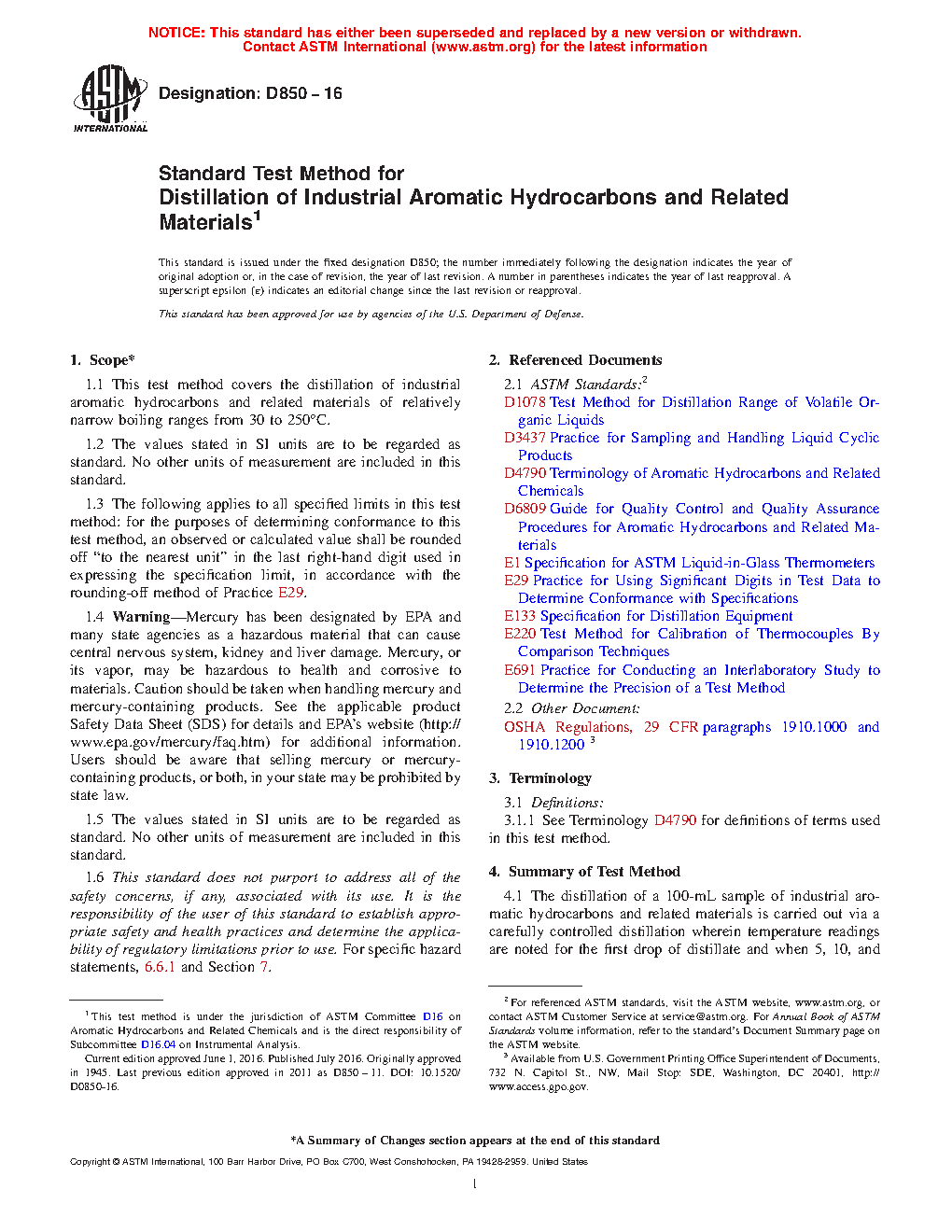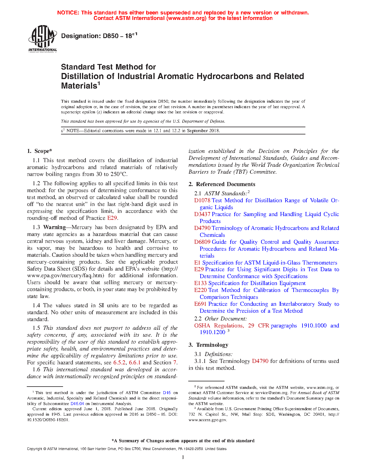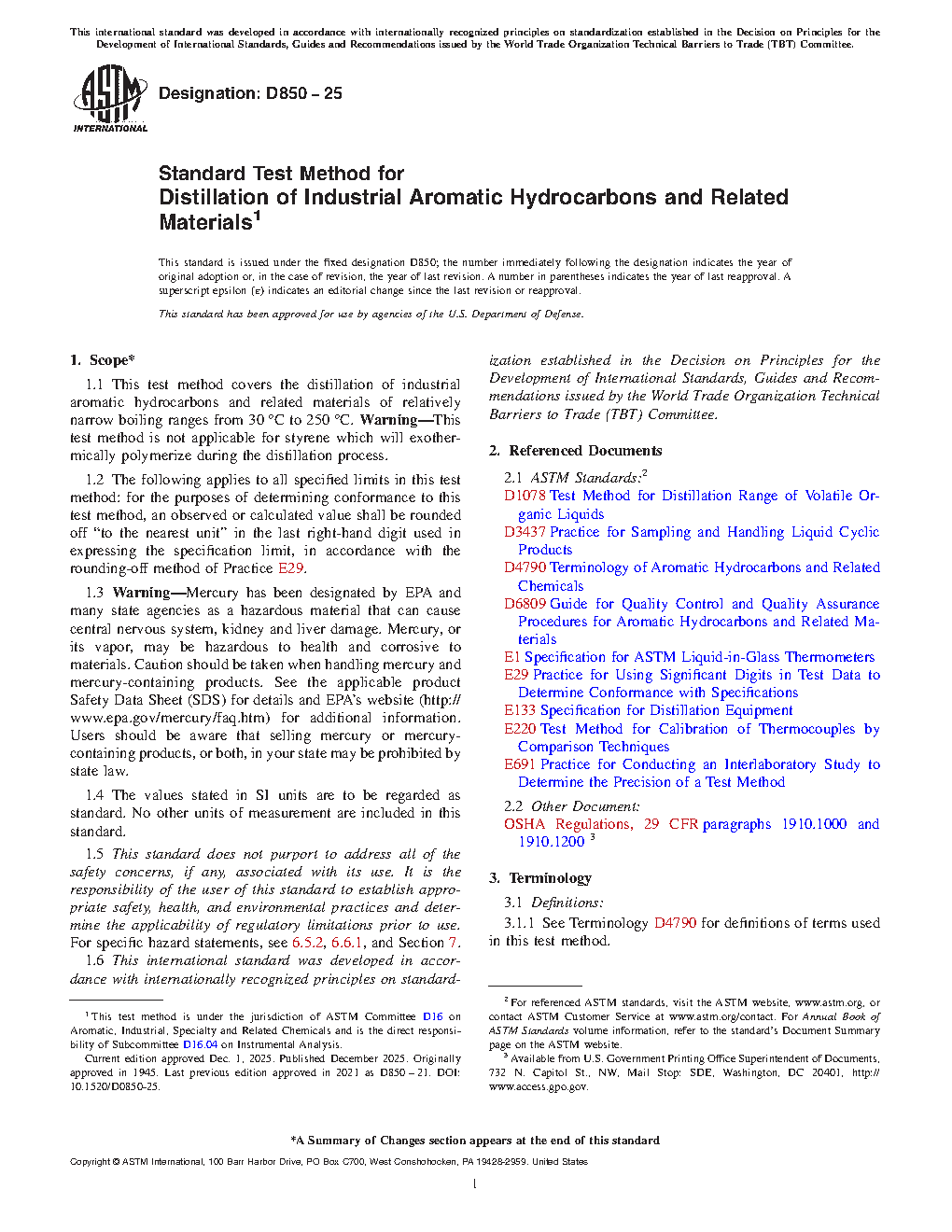 1.1 This test method covers the distillation of industrial aromatic hydrocarbons and related materials of relatively narrow boiling ranges from 30 to 250°C. Warning—This test method is not applicable for styrene which will exothermically polymerize during the distillation process.